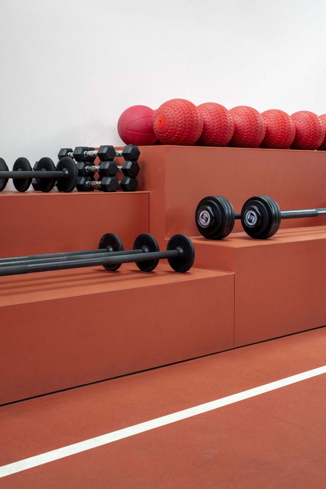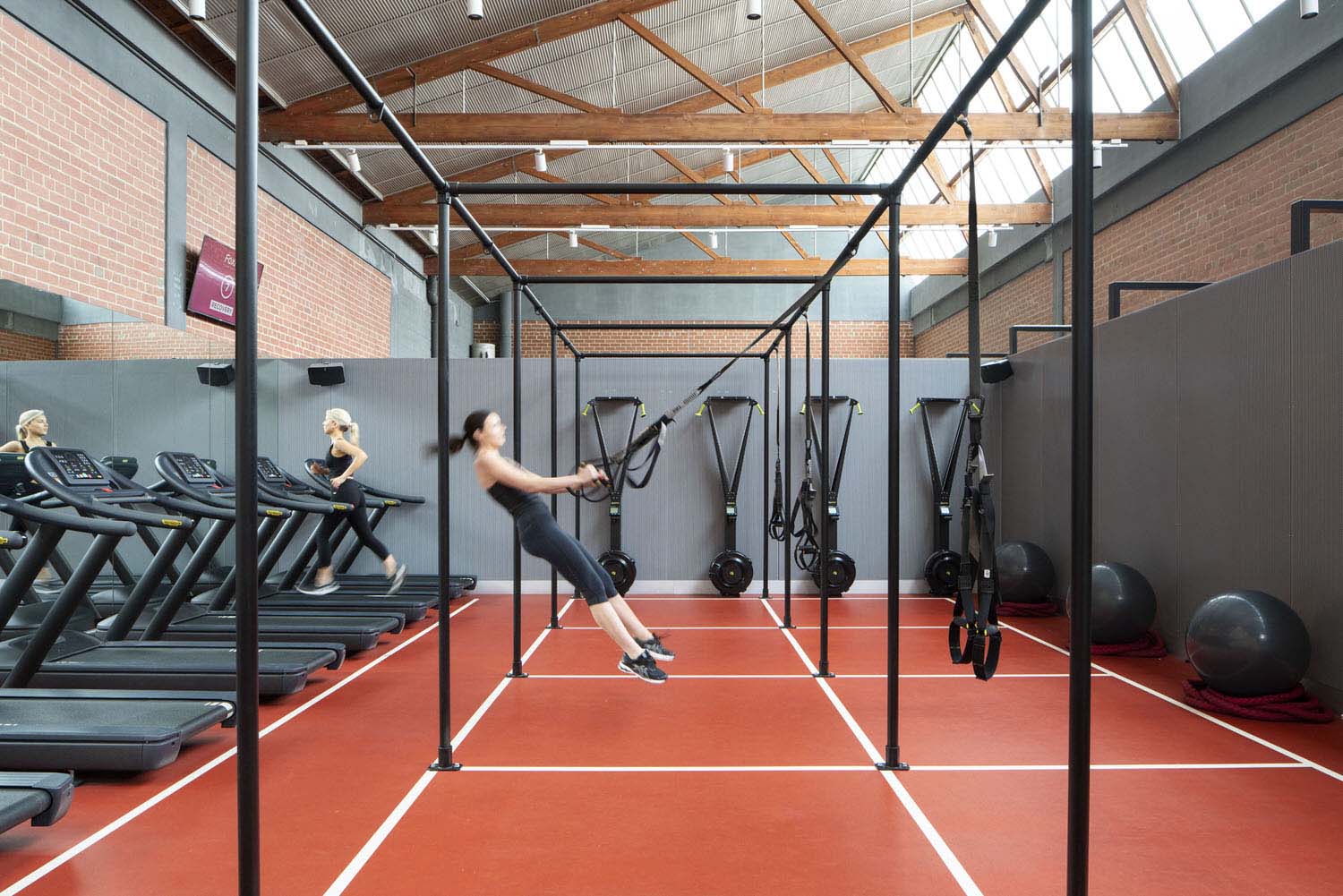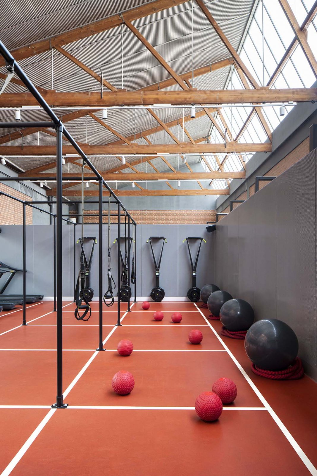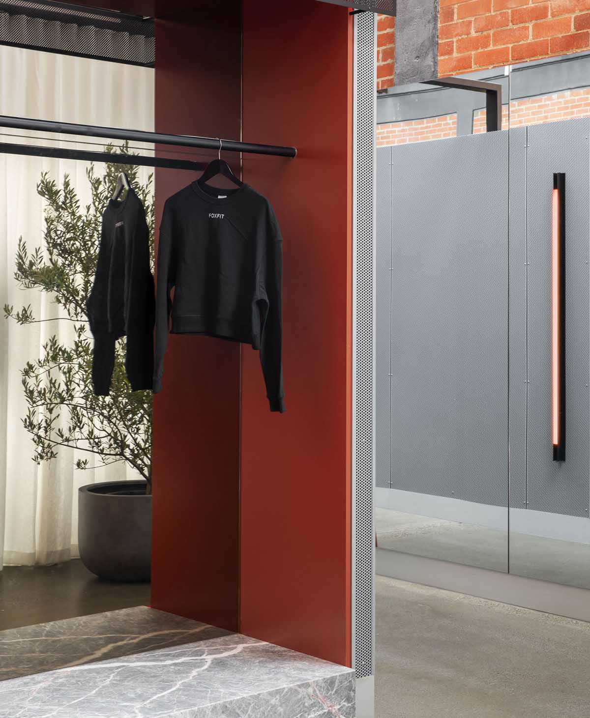 由于提供了许多体育活动,空间规划和区域划分对于实现功能要求至关重要。迎接抵达,鼓励活动并暂息的实用空间,覆盖着彰显力量和赋权的设计元素,看不到性别“规范”。 Mim Design通过增加黑色钢支架,穿孔金属和木材细节,使原始的砖砌和锯齿形屋顶焕然一新。天然石材和瓷质马赛克砖与现场的工业骨架形成鲜明对比,营造出宁静的氛围。 由Mim Design设计的具有理性和意图的FoxFit是女性赋权的体现-一个通过设计与品牌对话,在启发性环境中通过成就获得回报的空间。
