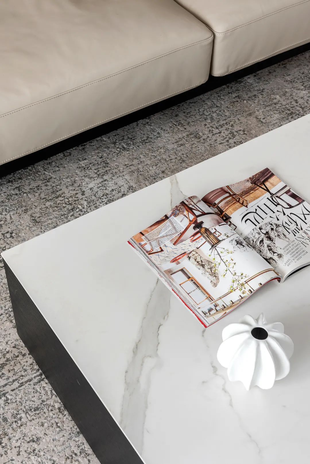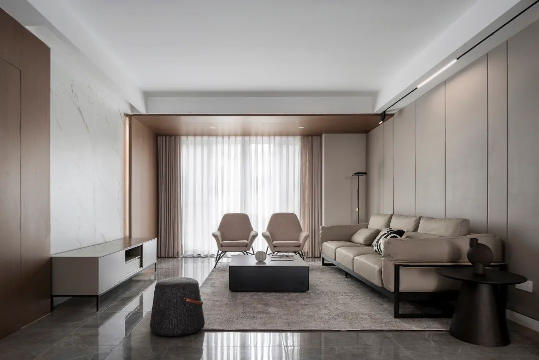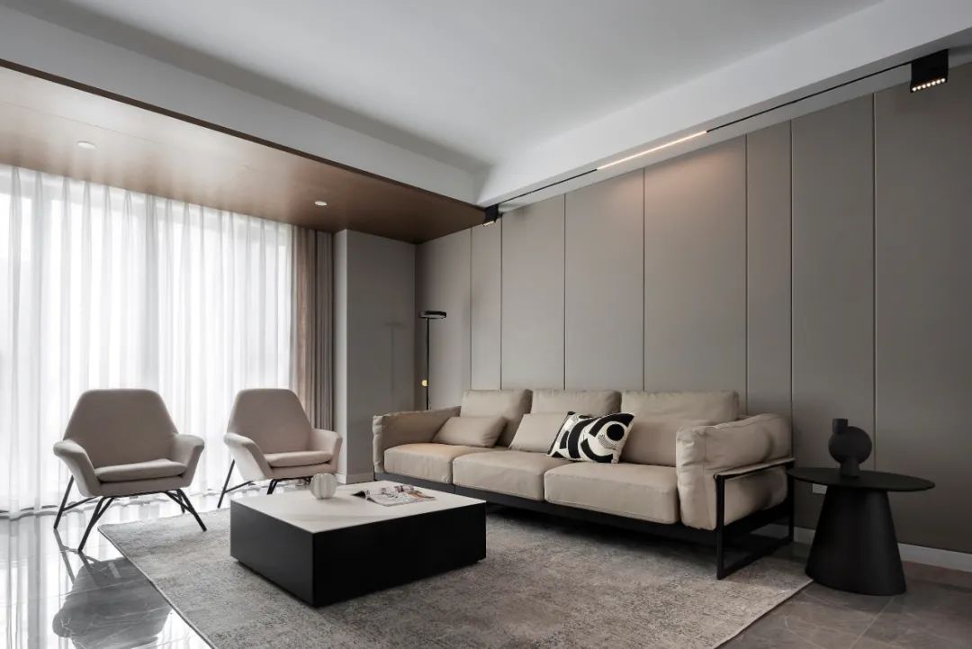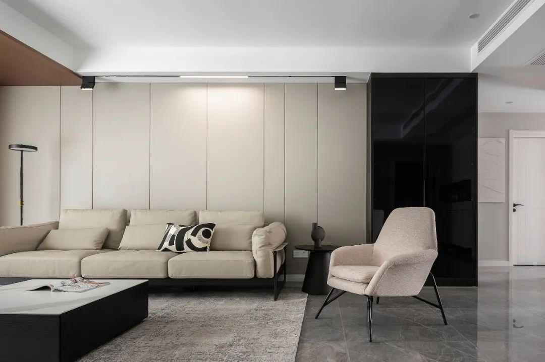 客厅的无主灯设计使得空间更加简洁,没有厚重感,视觉效果也更加的开阔。线条与材质藉由光线的作用,传递设计师给予他们的语言。