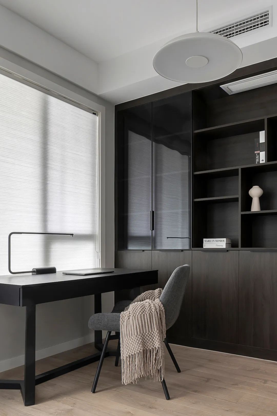 本案位于九里晴川,套内面积有122㎡。整体空间的色彩设定,大自然的石材、木皮同时有一点点灰阶的调性,让空间的颜色看着能感受到更多大地色彩。
