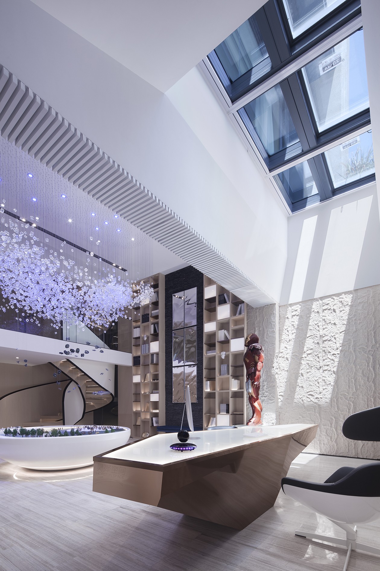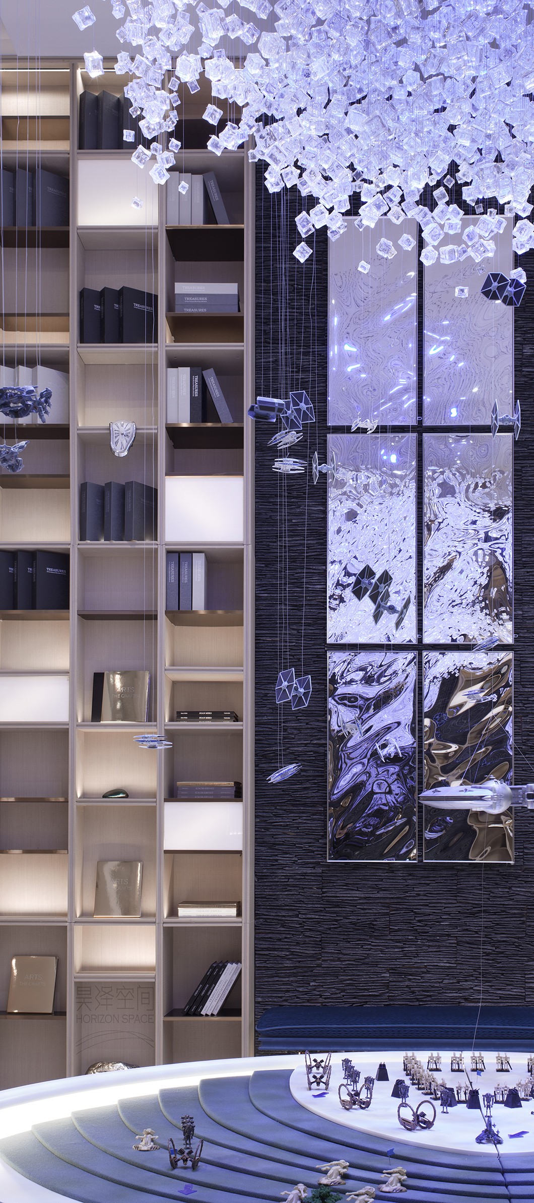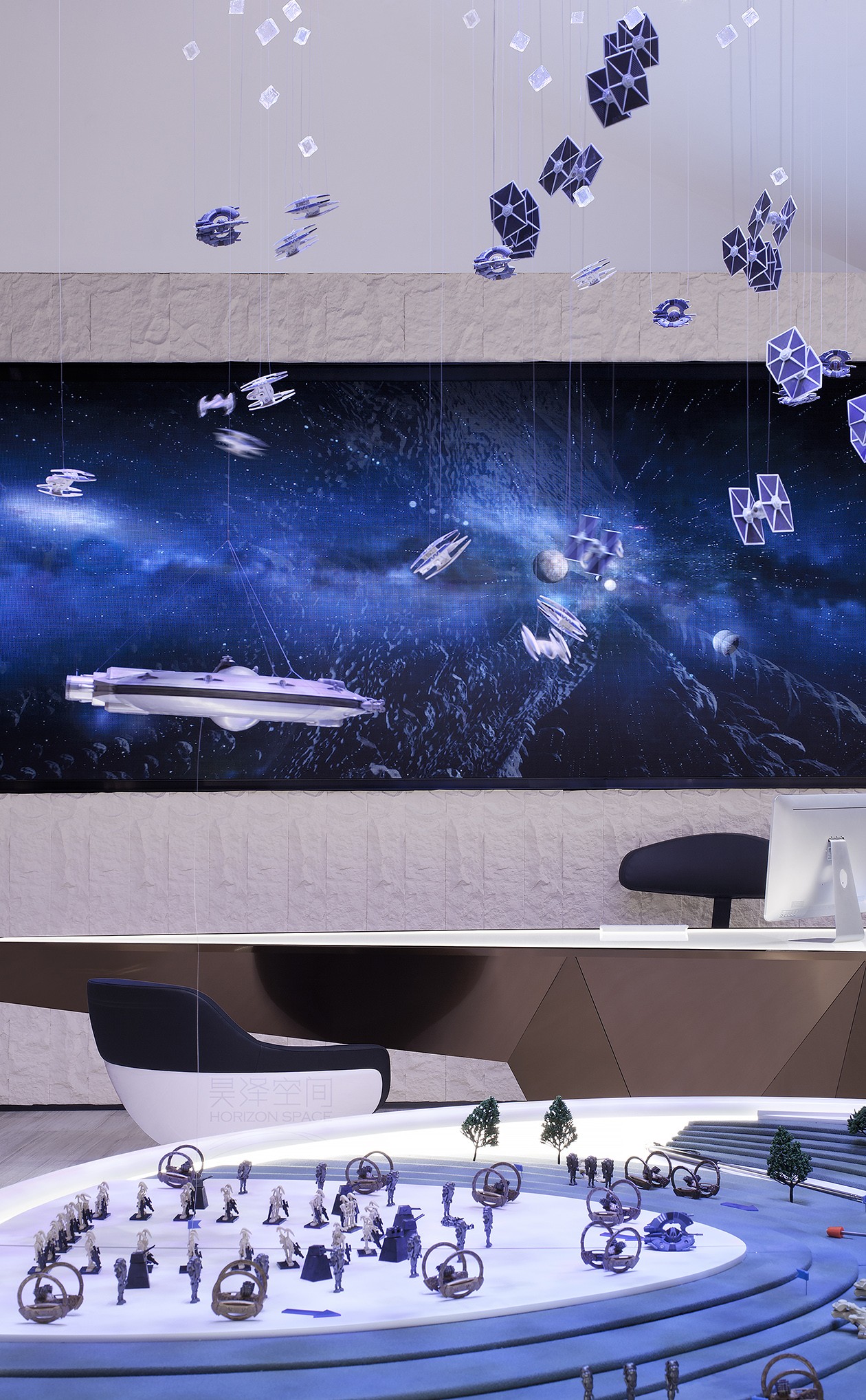 星球大战三部曲的风格视效贯穿了整个工作室空间,银河系主题装置和星战对战沙盘作为整个空间的视觉焦点。