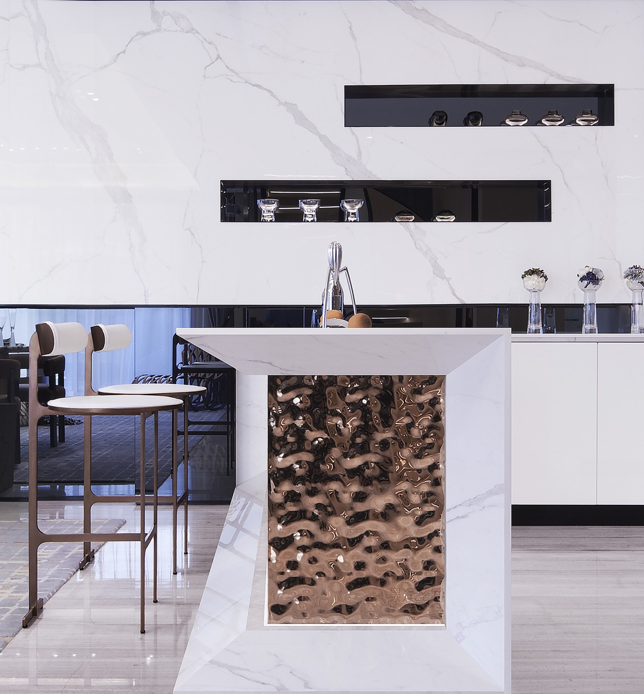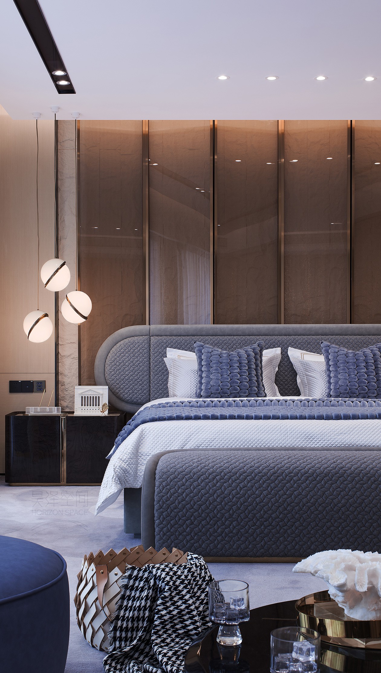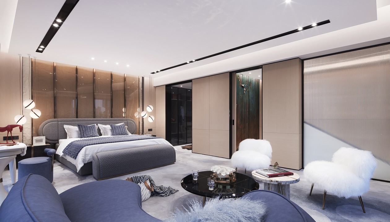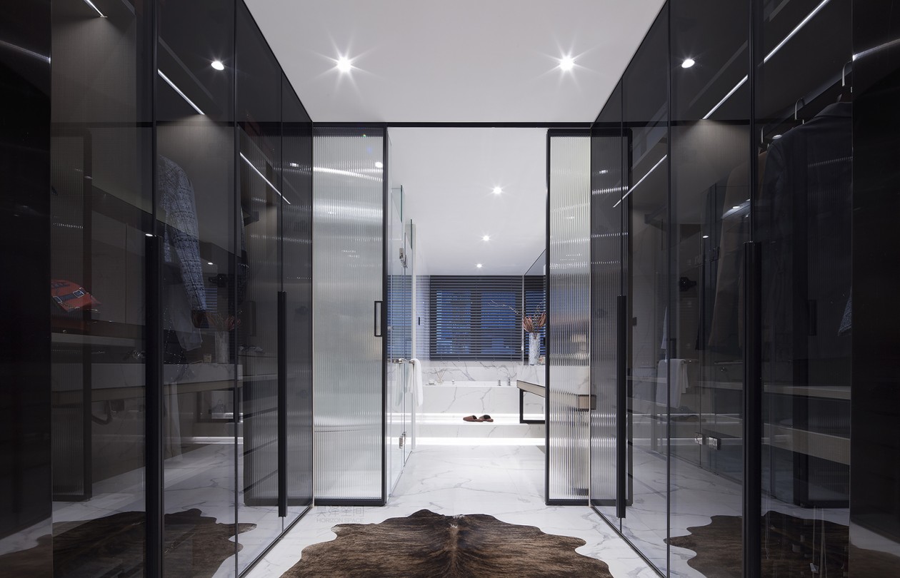 步入式衣柜和宽敞的浴室相连,创造了一个具有独特生活体验的流动空间。