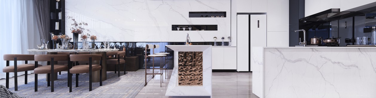 客餐厅采用大横厅的设计,大空间尺度的客厅和超长的景观阳台完美融合。