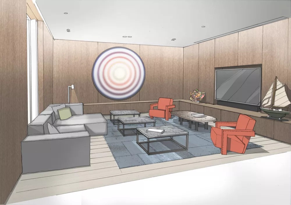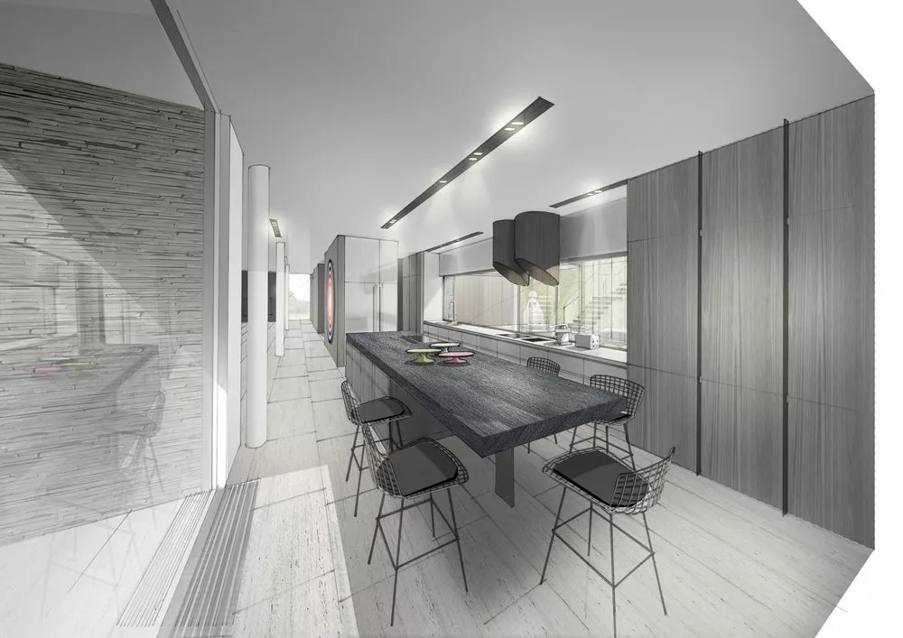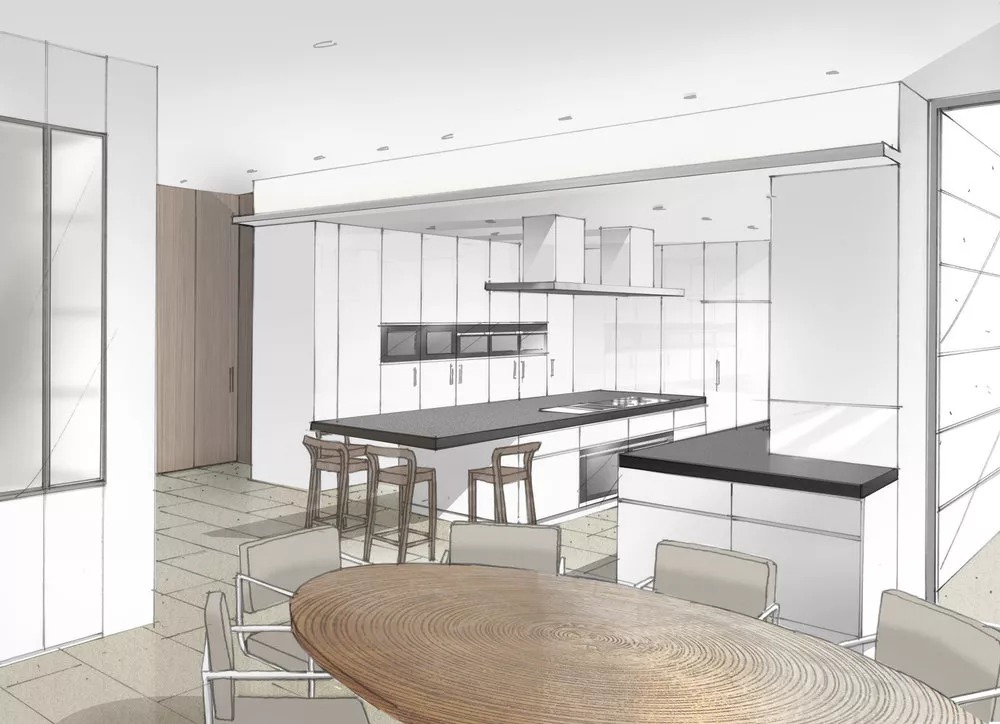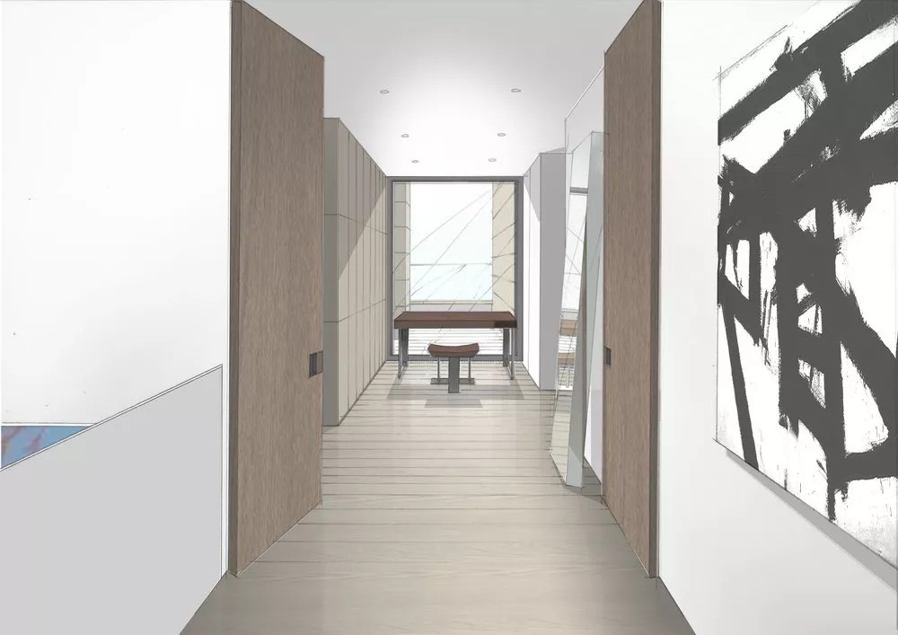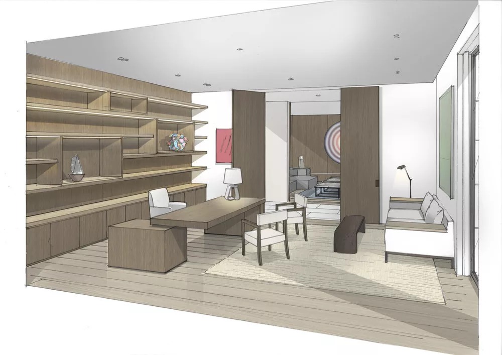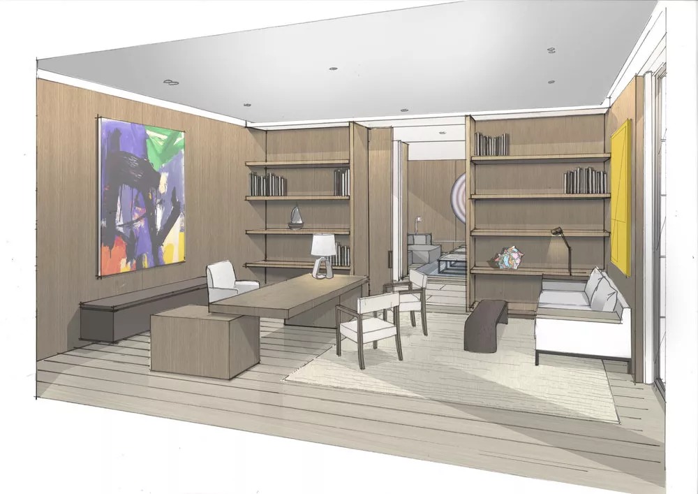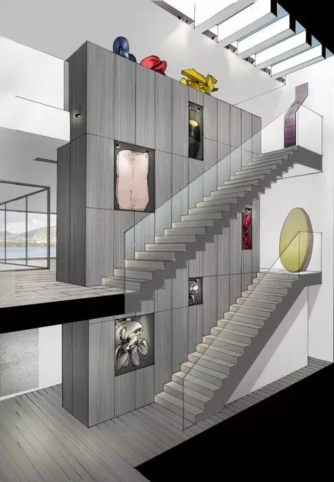 在大宅设计中,效果图一般都是方案设计中很重要的变现环节,很多都是追求尽量真实的效果,但今天为大家介绍这个设计师的作品中,却是用Sketchup、PS、手绘的结合表现。