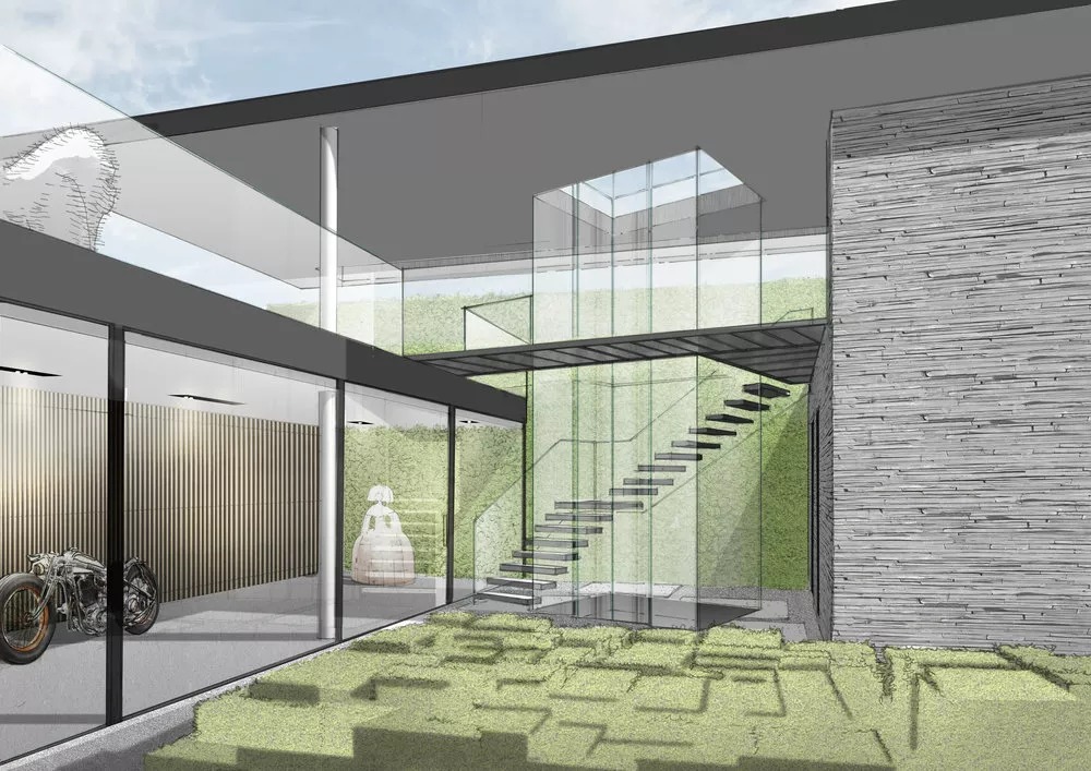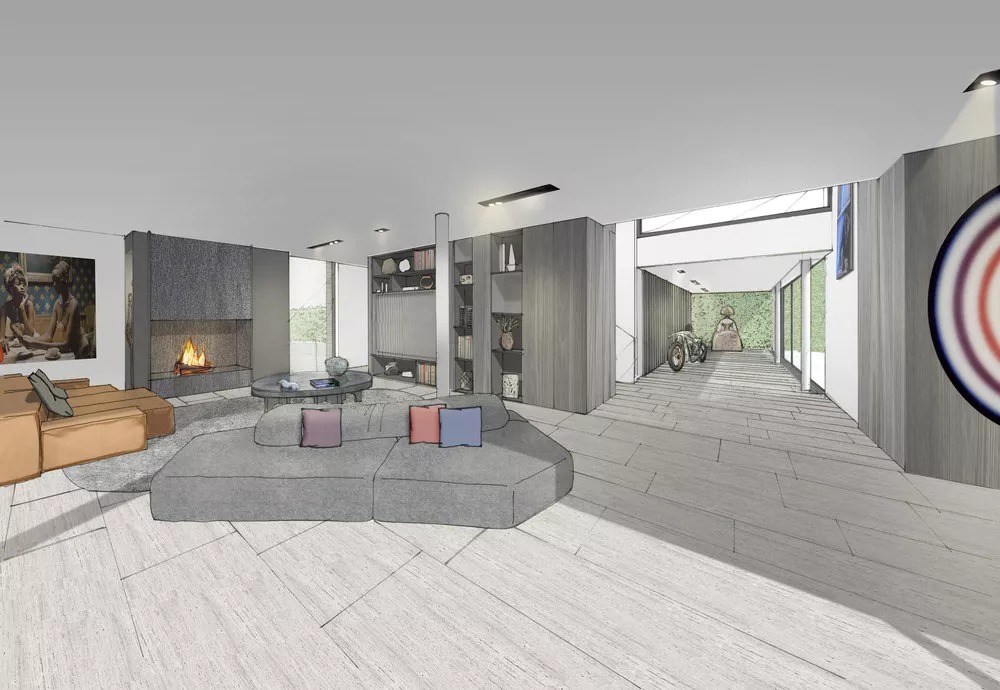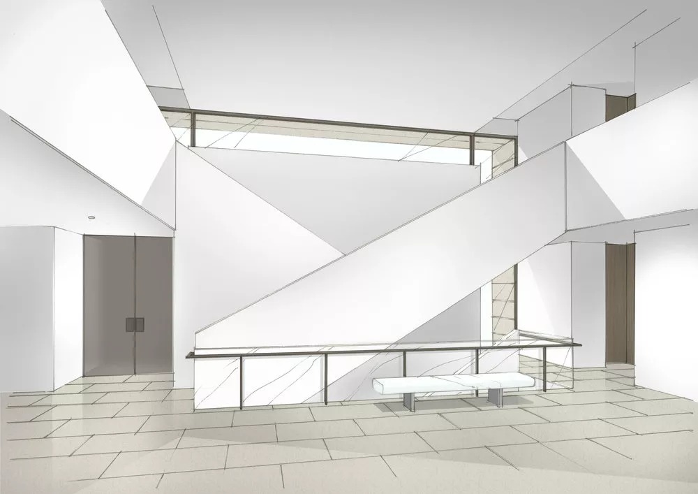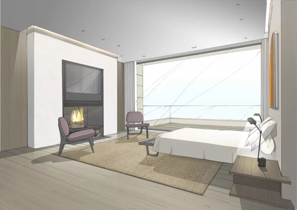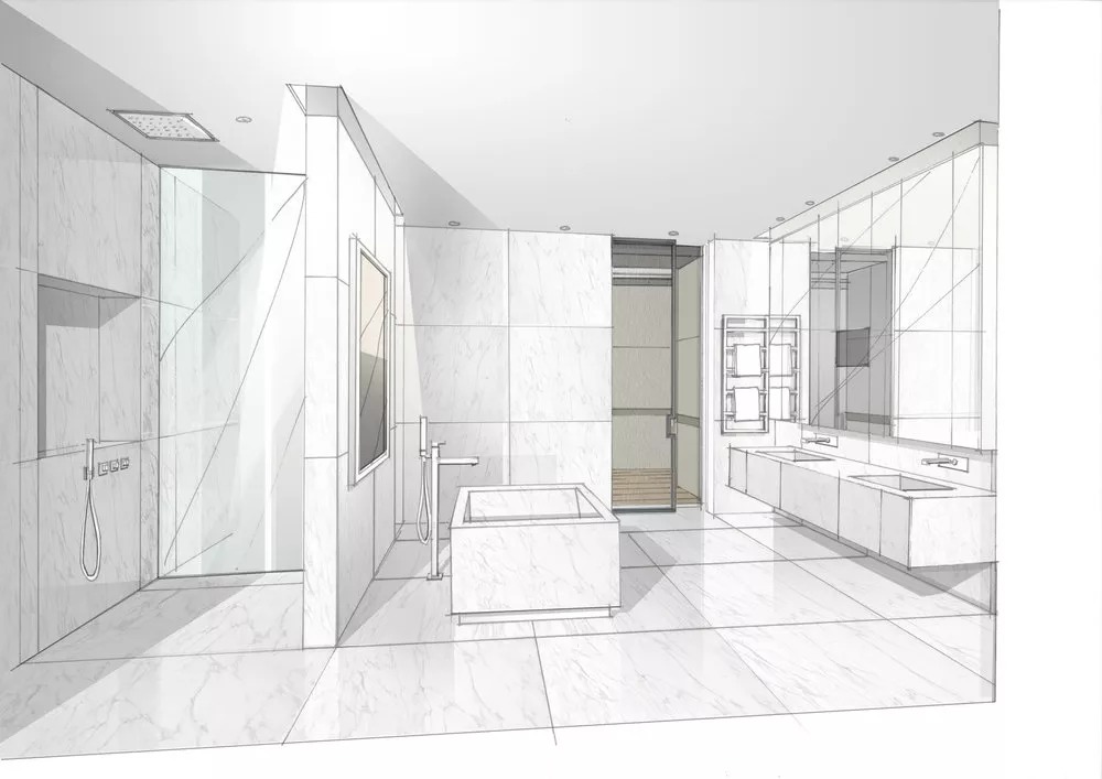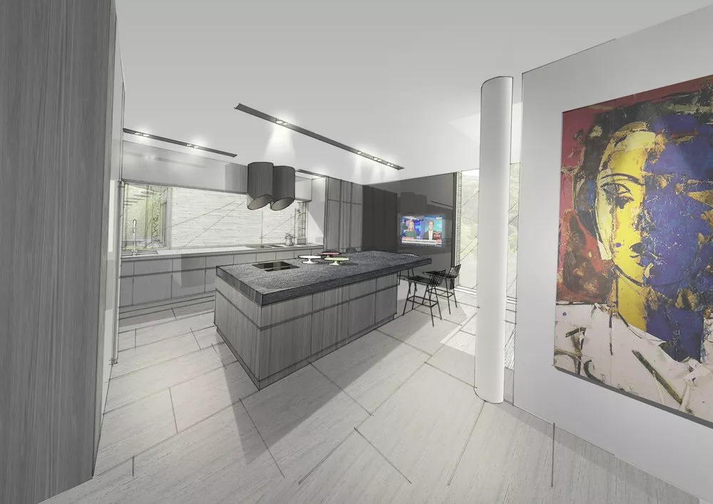在大宅设计中,效果图一般都是方案设计中很重要的变现环节,很多都是追求尽量真实的效果,但今天为大家介绍这个设计师的作品中,却是用Sketchup、PS、手绘的结合表现。