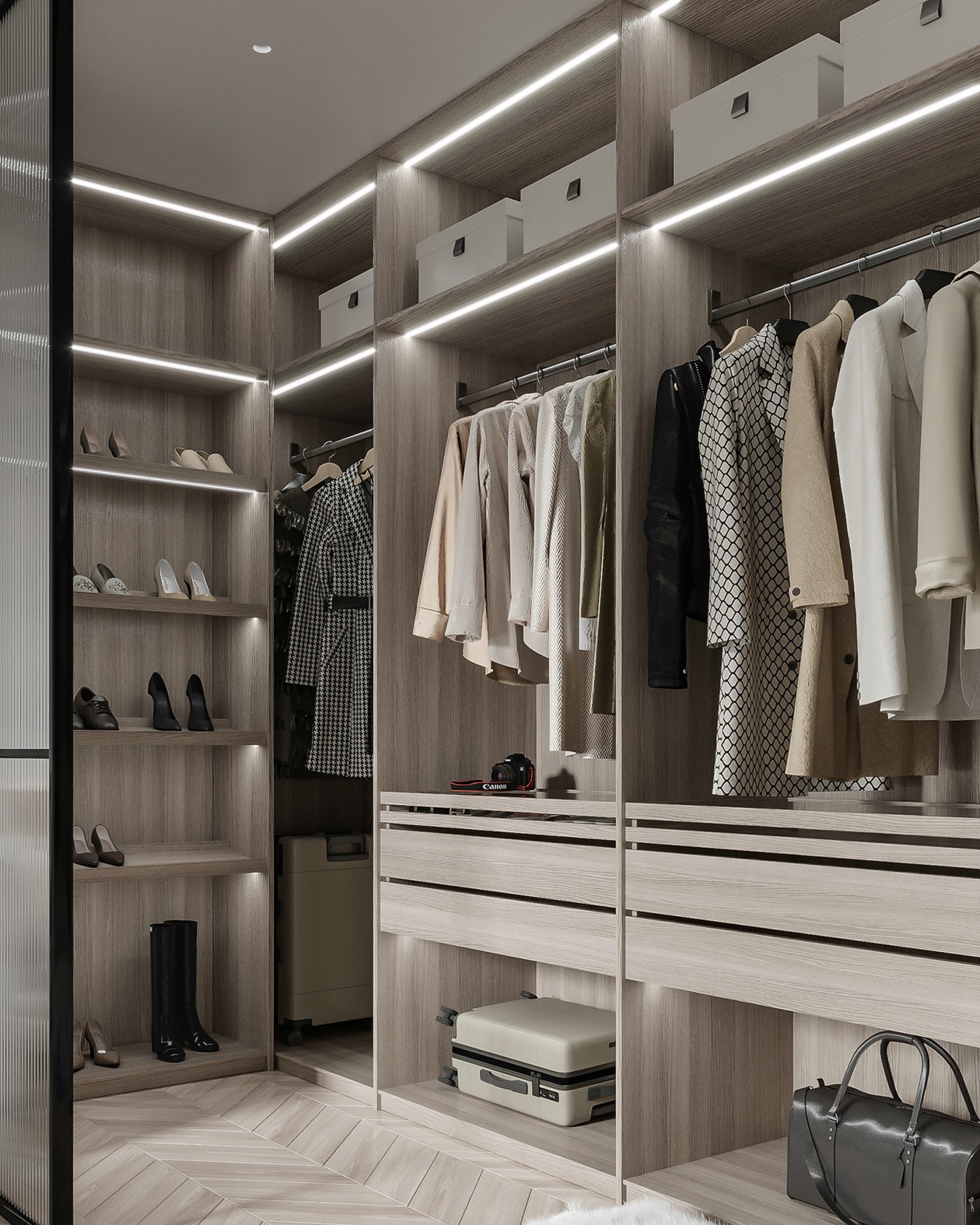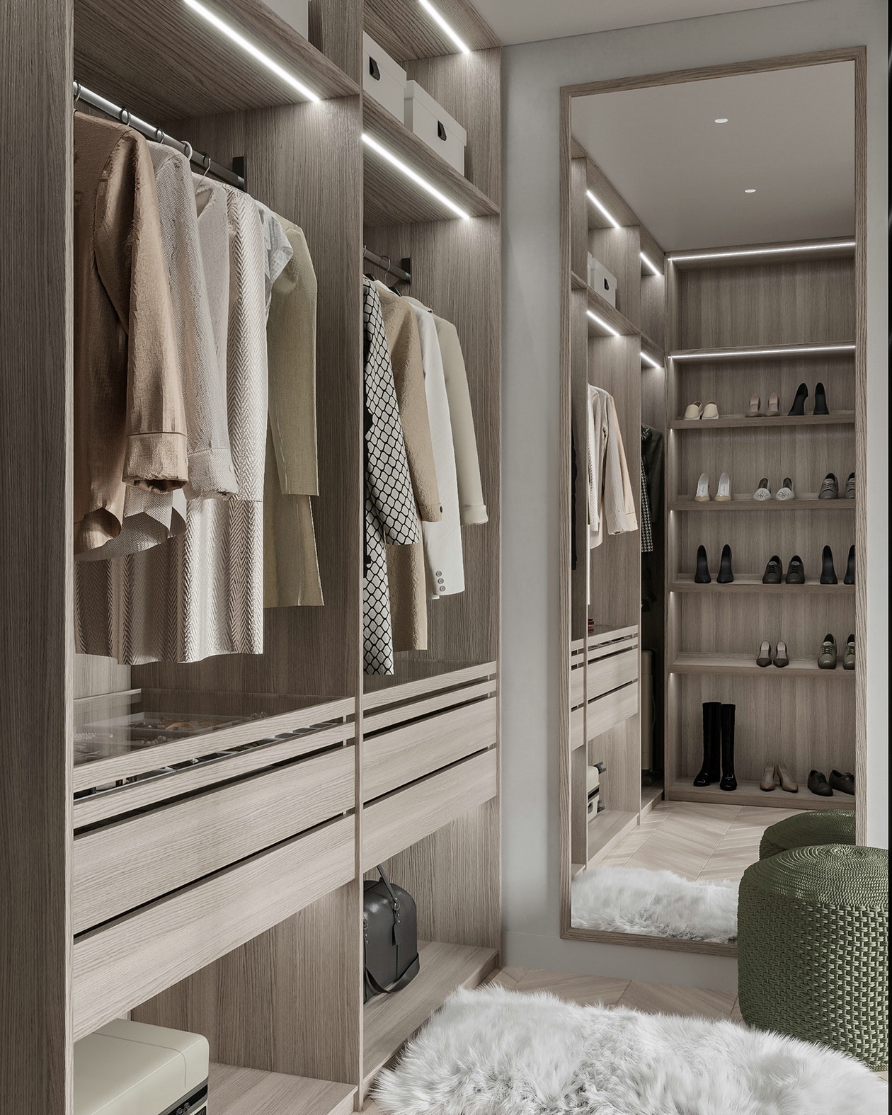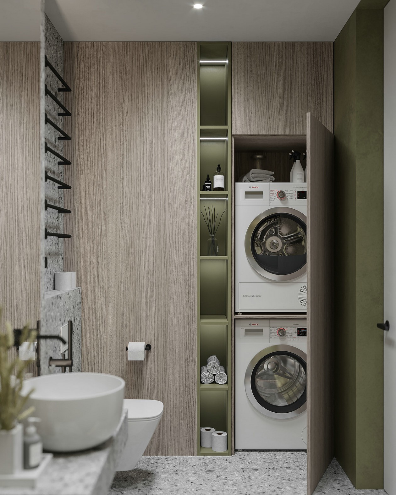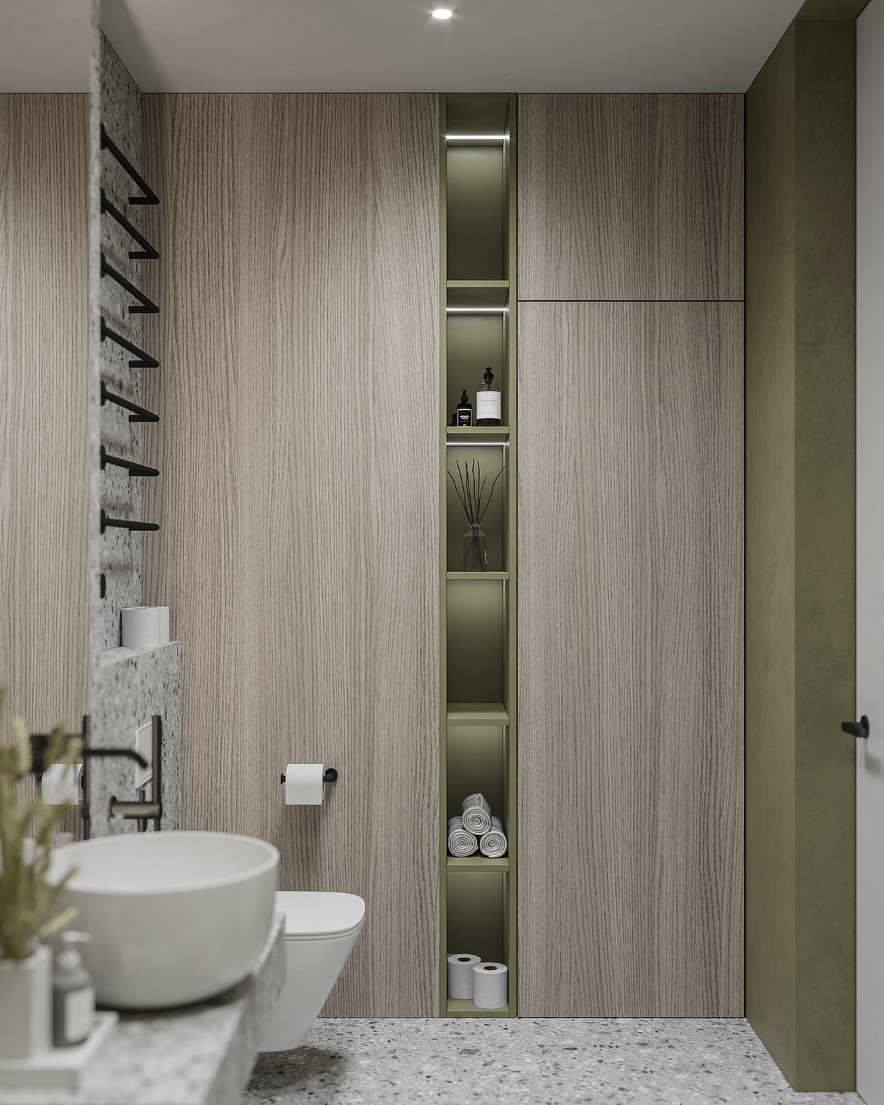用充满生命力的绿色提升整理空间的质感,再搭配原木色,一个自然的空间设计,让人舒适!
