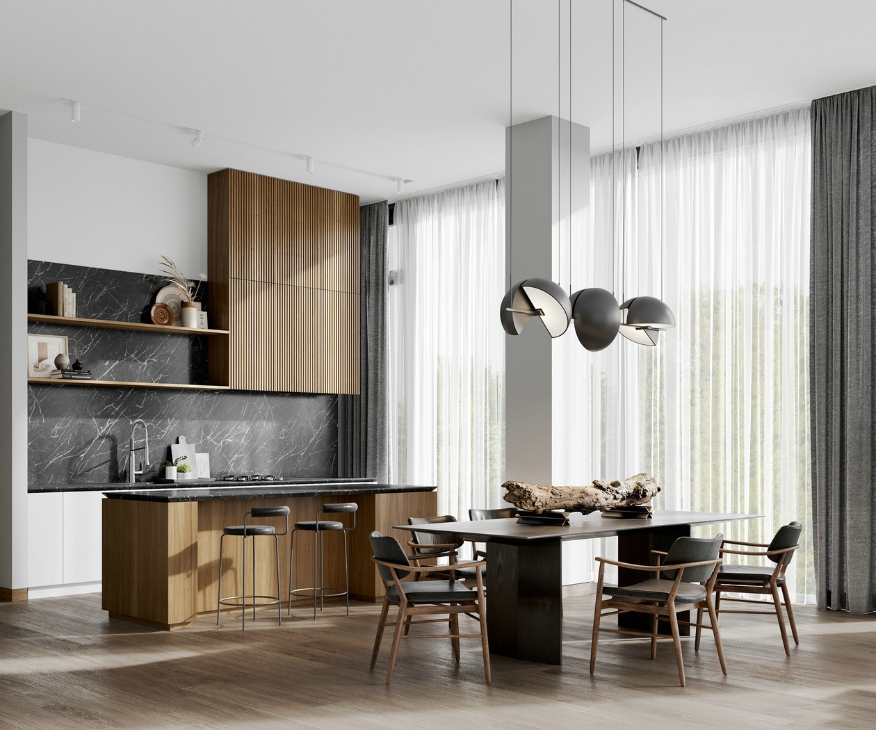 简洁白色和质朴原木,没有过多彩色和繁复,既舒适又干净!