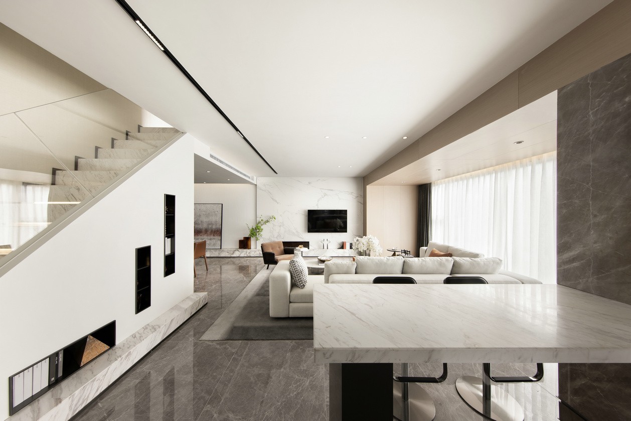 室内空间设计上体现了意式生活的空间氛围,软装配饰的精心搭配,极具质感的材料和面料营造出舒适感。