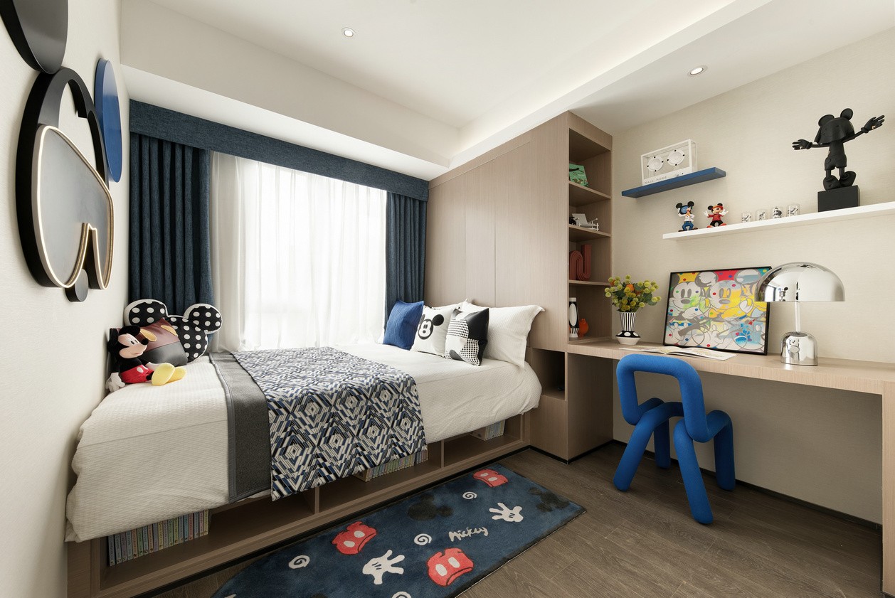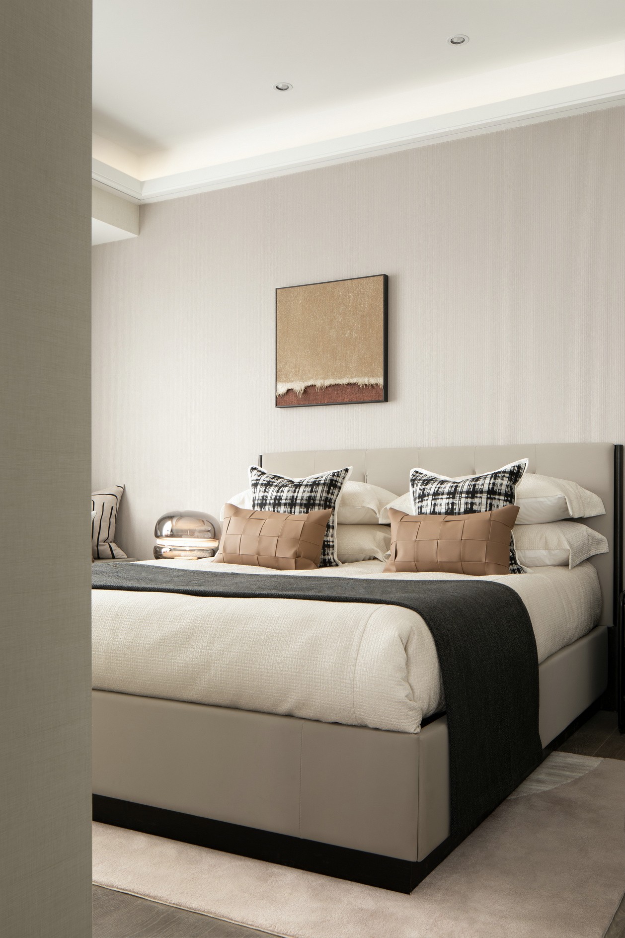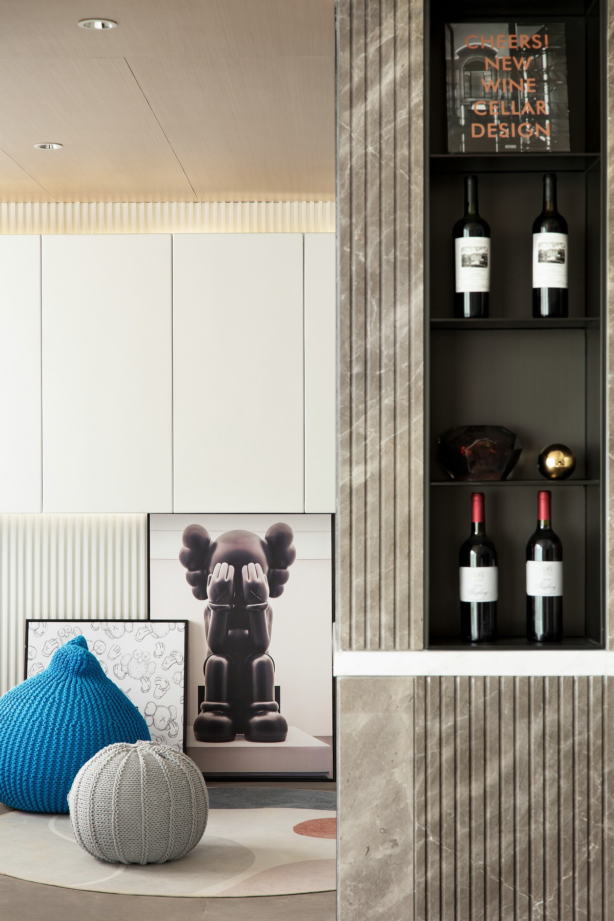局部配以融于与主题相关的艺术品,简约大气家私和带有温度的陈设饰品营造出质感,挂画与地毯的内容里隐约带出主题制造记忆线。