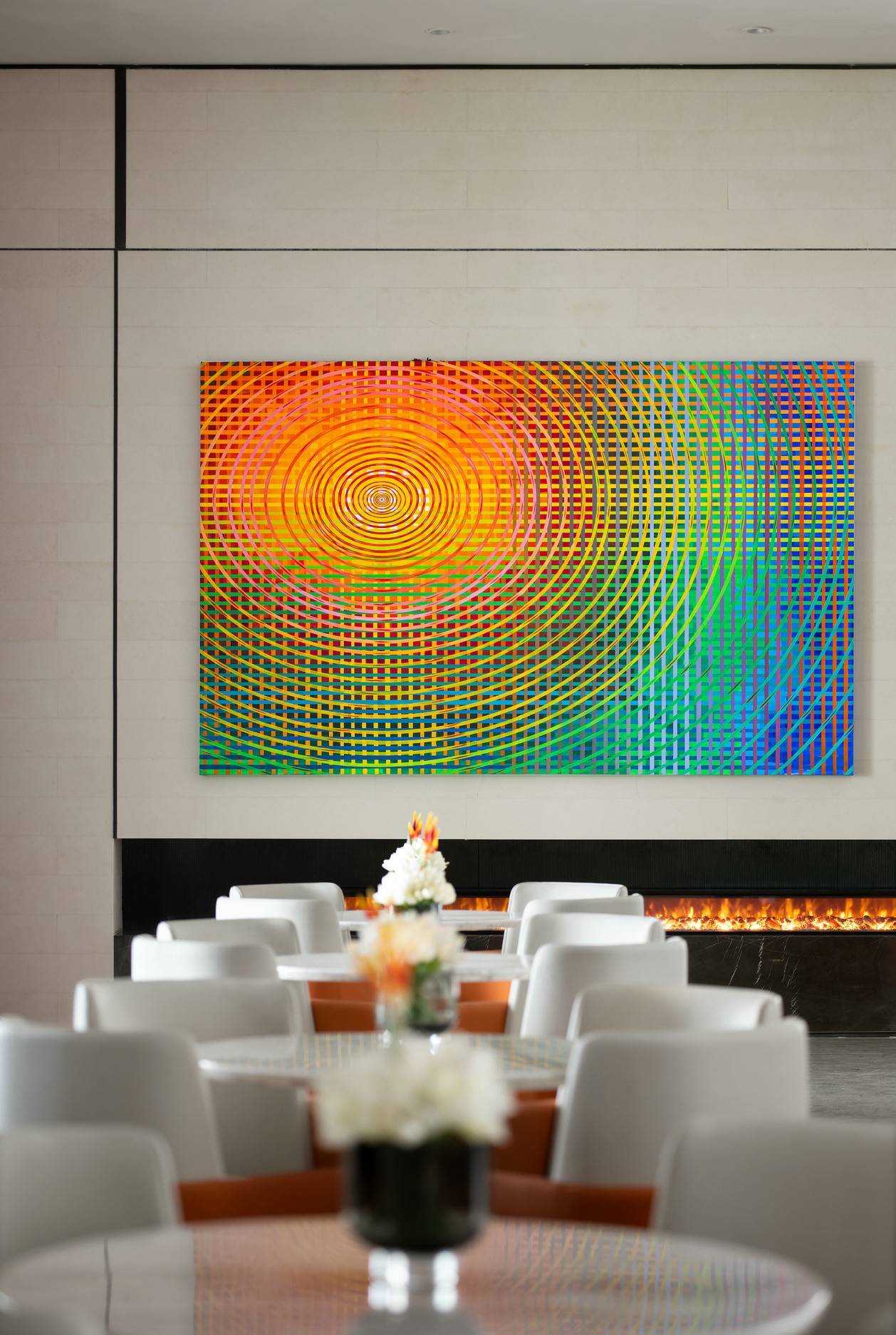 艺术挂画由当地手工织造,其灵感来源于贵阳特有的喀斯特地形,及阡陌纵横的梯田。卡其色的背景墙搭配显示地域文化的艺术装饰画,让人仿佛置身于当地的自然风光中,别有一番滋味。