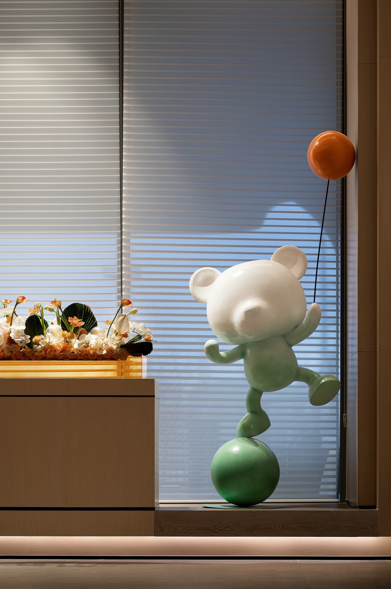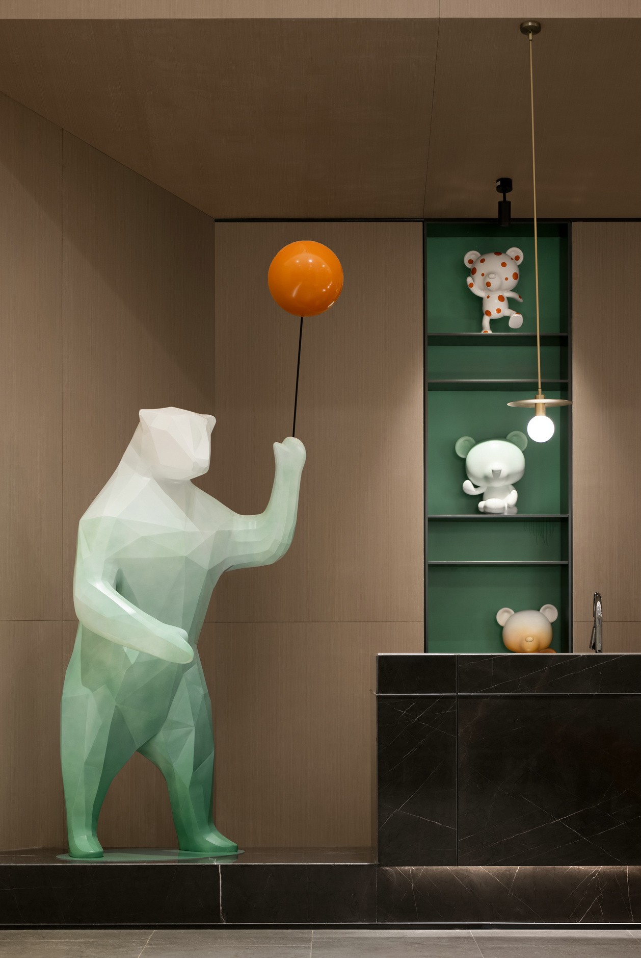 设计师结合当地文化进行衍生设计,引用旭辉小熊IP元素,构建特色IP主题化场景。契合当代年轻客户群体追求潮流、有趣和娱乐的天性,打造沉浸式空间体验,通过双向互动的形式让其更好地感受文化内涵,进而提高客户群体与项目间的强链接。