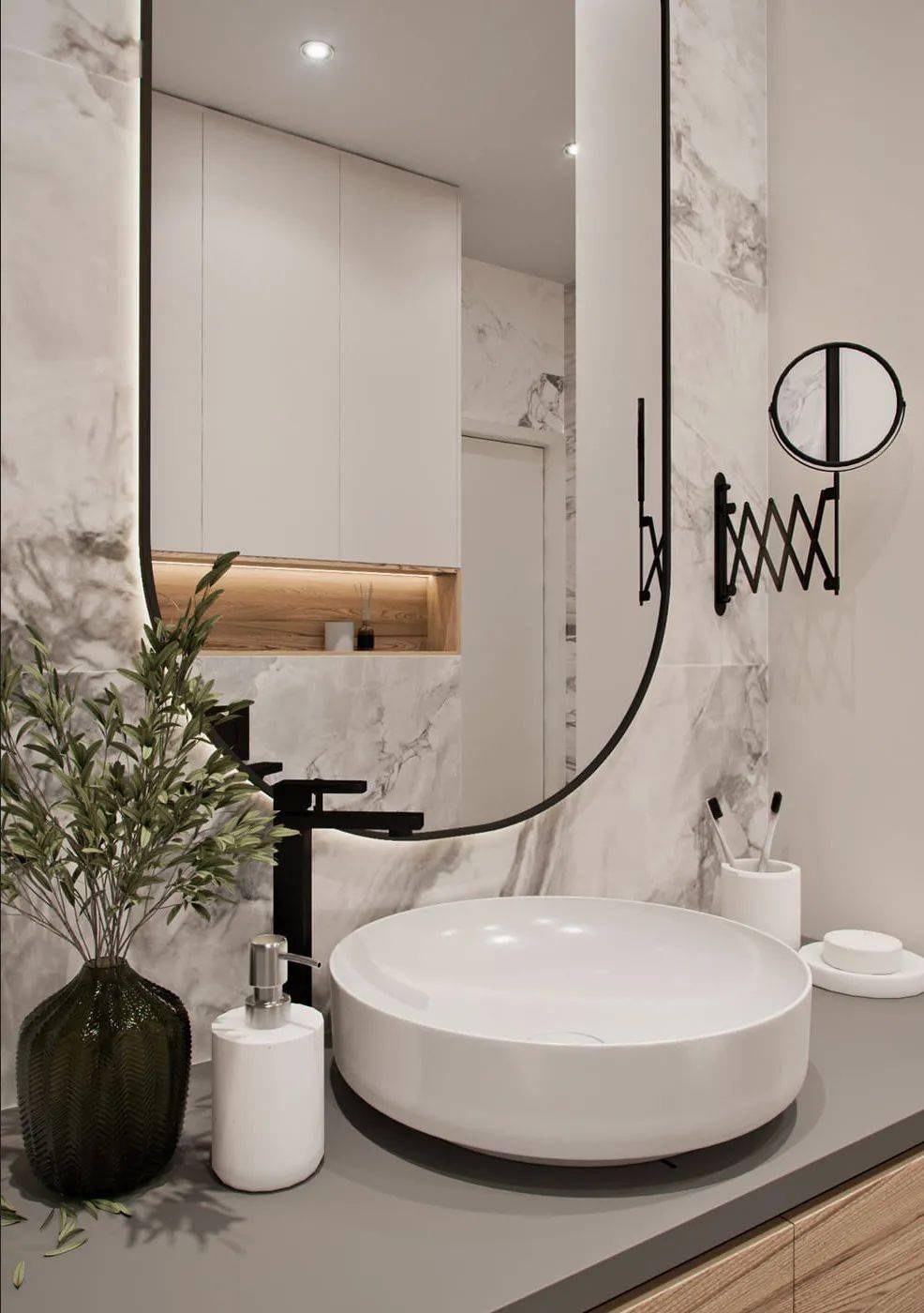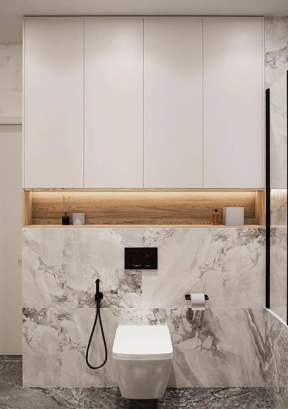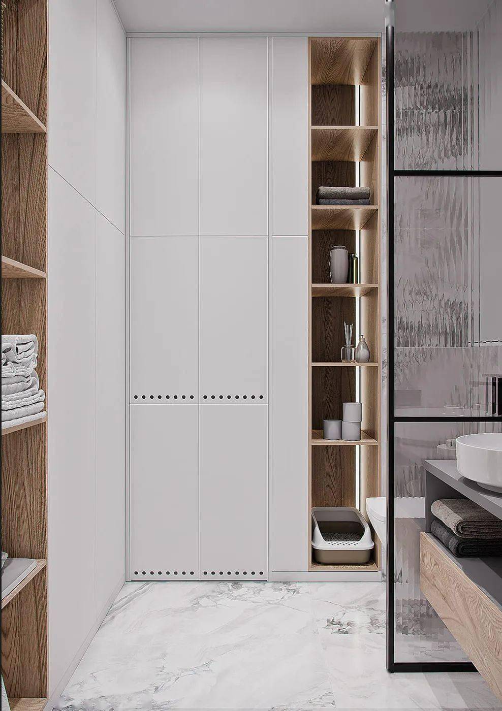 简净而明快的卫生间,以白色调为基础,原木、长虹玻璃、肤感饰面填充,轻盈而舒适,散发出满满当当的精致感。