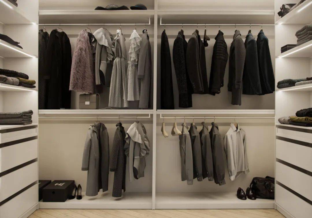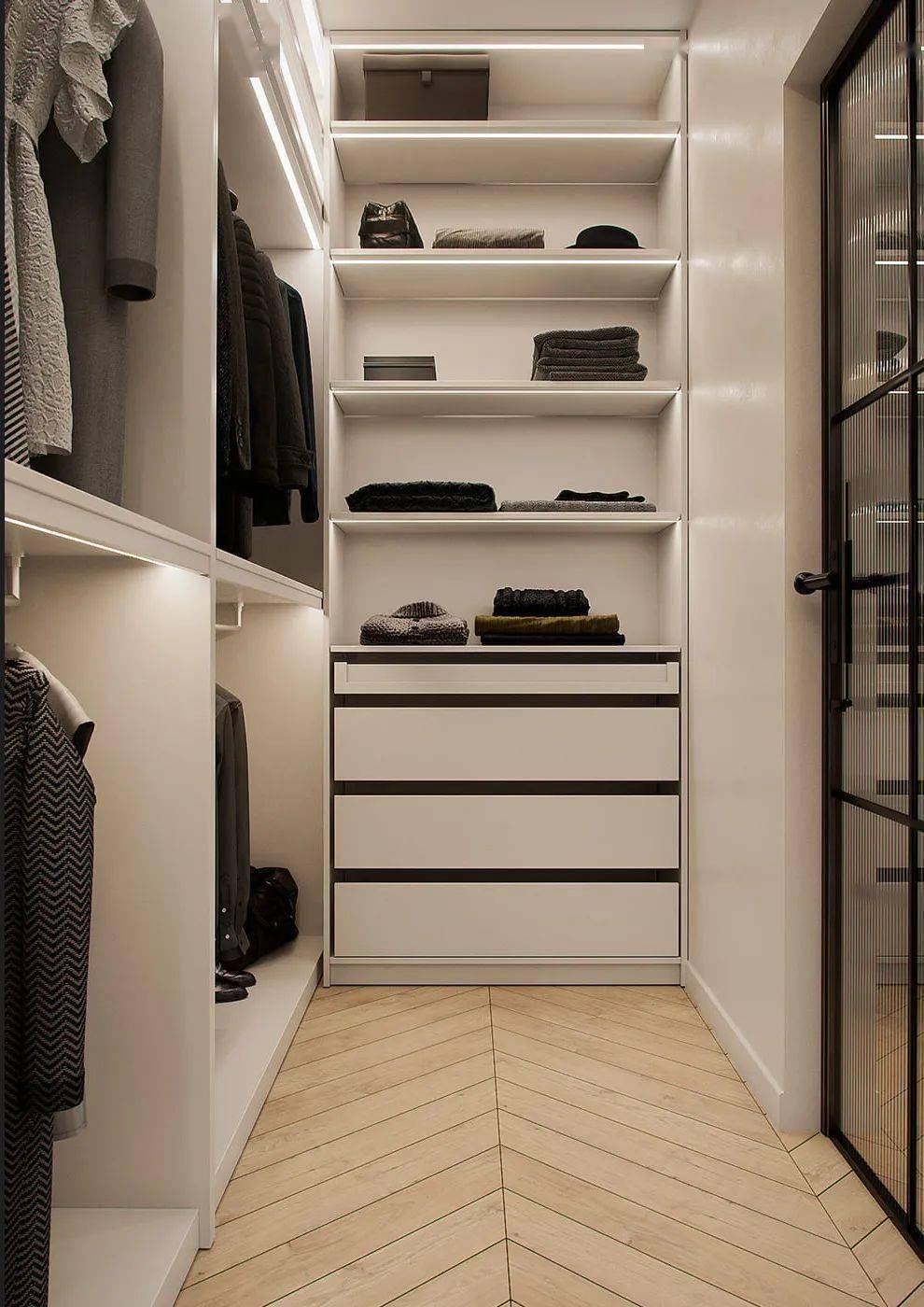 简致的衣帽间,带来更舒适、从容的生活仪式感,白色面板相嵌让收纳分区更细致,利落的立面呈现,拥有更细腻的视觉质感。