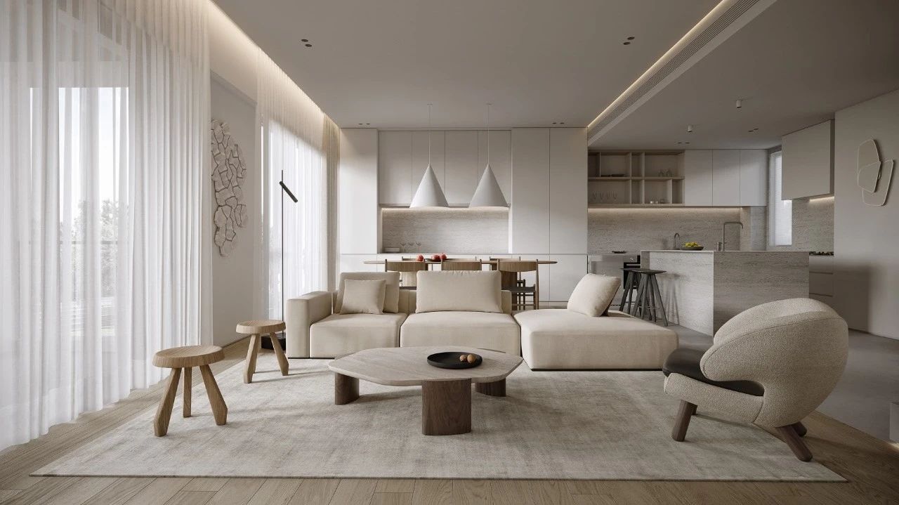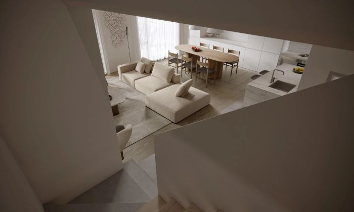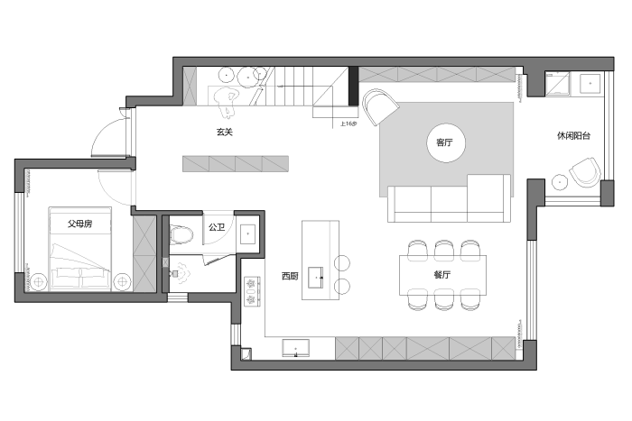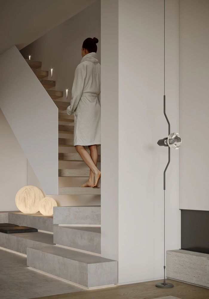本案位于广州新区一栋复式楼,喜欢旅行的他们崇尚与简约的生活方式,希望空间尽量开敞大气,家庭成员能更好的互动交流,不需要过多的装饰,能在房子里找到自己的生活节奏,打造出一个身心放松的美好居所。
