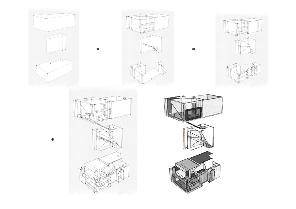 项目位于佛山老街区中,建筑空间由两个高低错落的区域组成,分别构建前区与后区的关系。