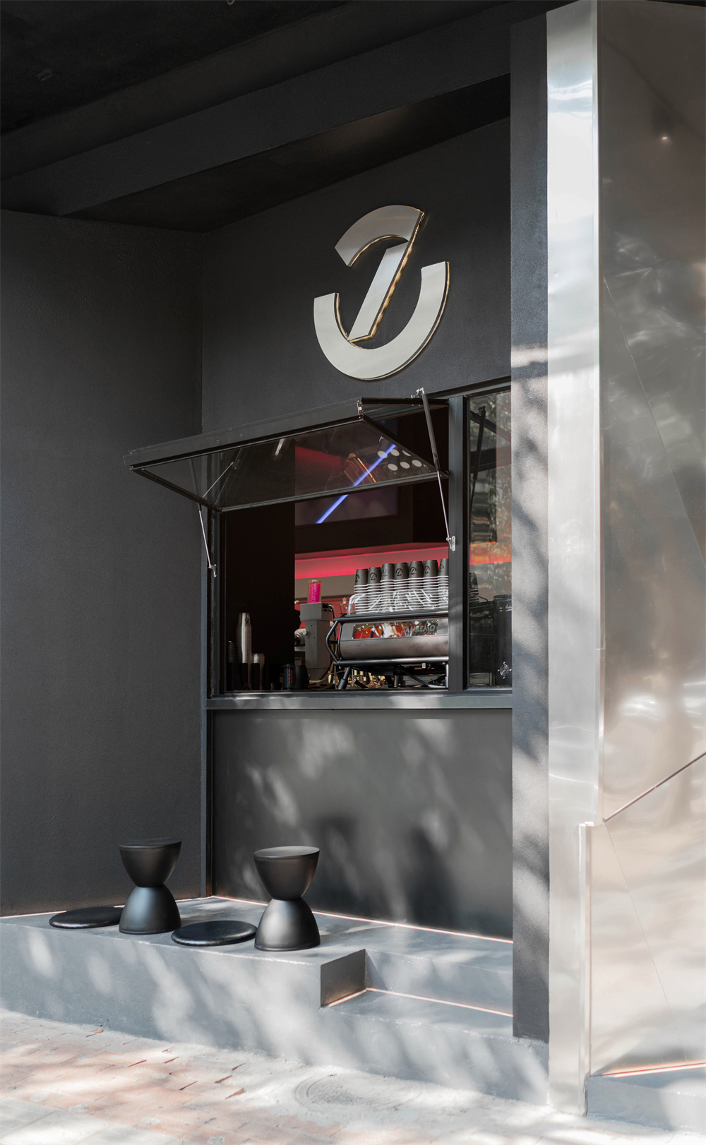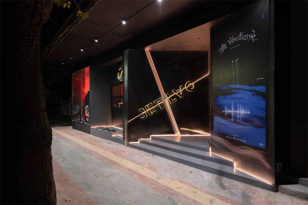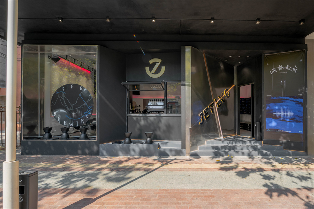 不规则的切割斜面形成独一无二的门面视觉,聚焦潮流与时尚的咖啡与鸡尾酒概念。