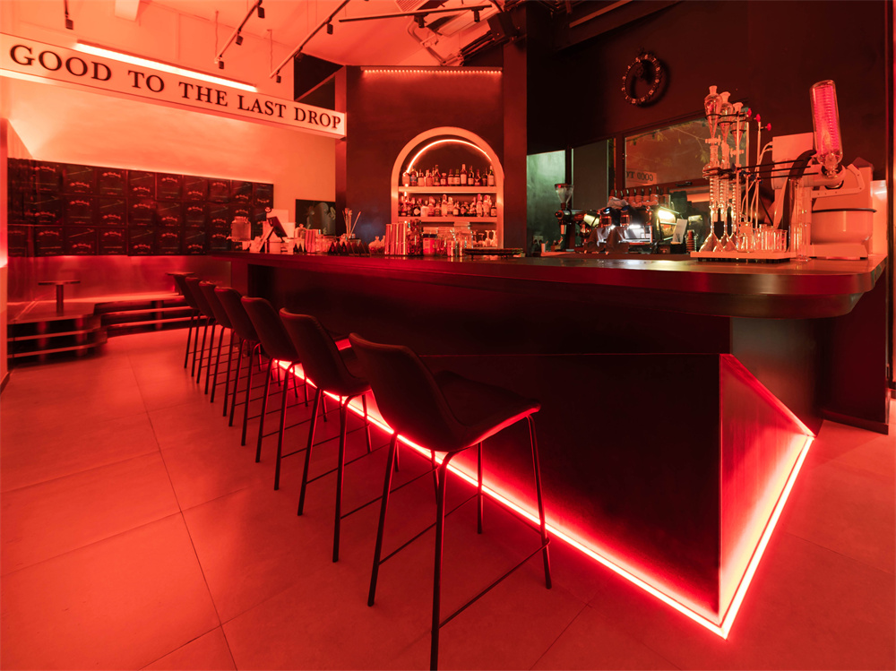 因此,在我们在规划空间时,结合品牌概念ALL DAY COFFEE , ALL DAY COCKTAIL 的新观点,利用几何形态与不规则手法打造新时尚的潮流餐吧。