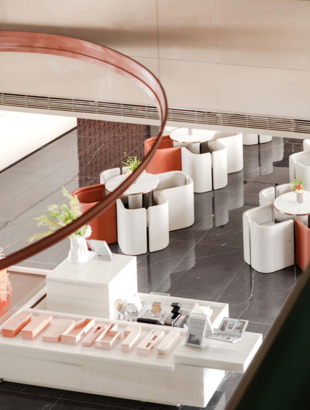 色彩光线通过软装将舒适感以感官形式传递,设计用去销售化的现代手法,将社交、休闲、会谈、阅读等功能集为一室,成为承载情感的链接。