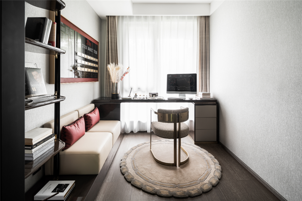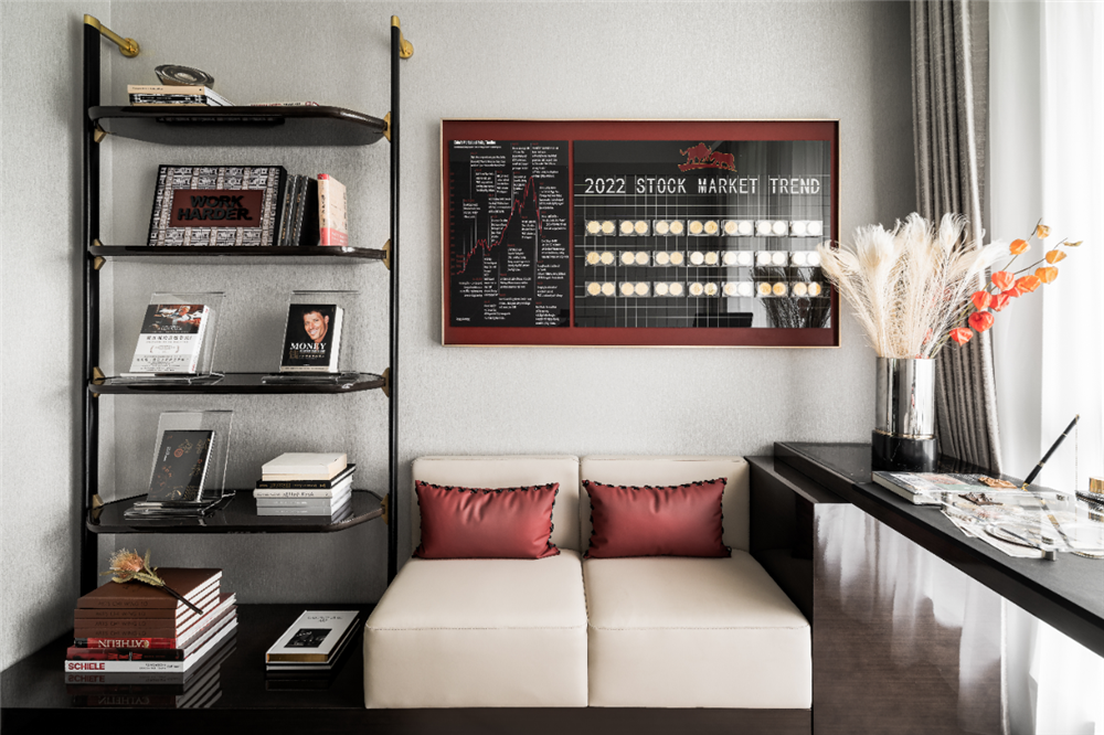 特别定制的转角书桌与开放式书架,新型的居家工作室积极推动着视觉前沿的边界发展,曼昆的《宏观经济学》更能烘托学术气息,《行为金融学》能彰显对市场的深度思考,全方位展示实用主义的理性空间。