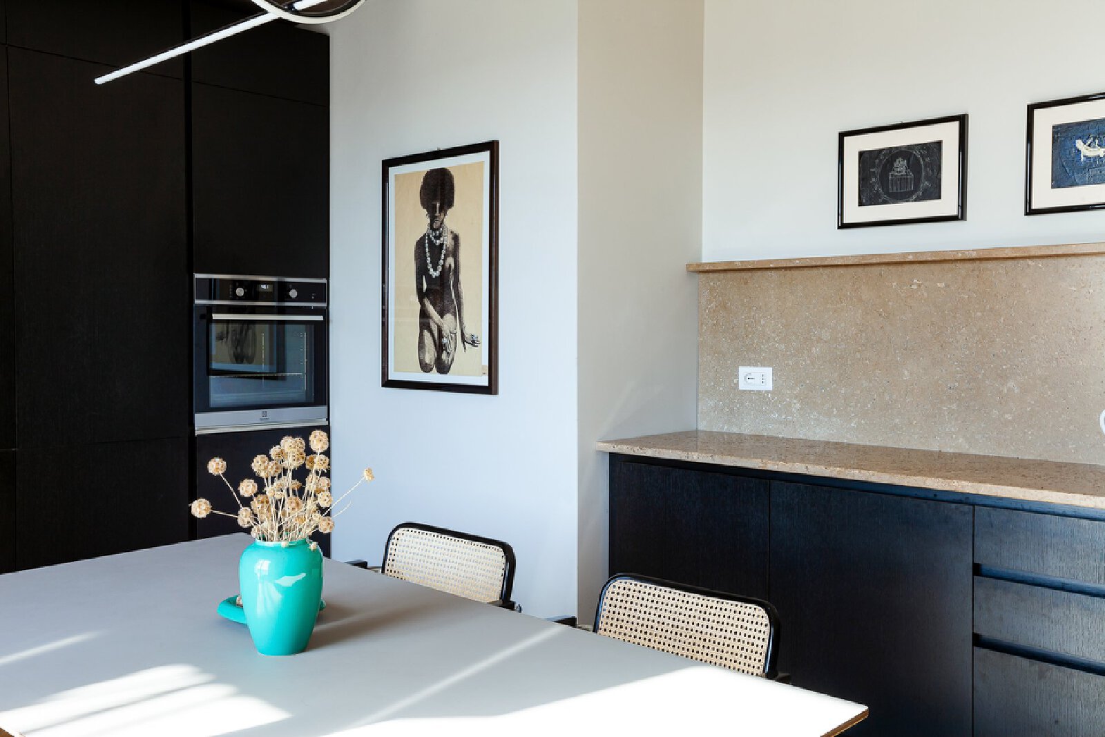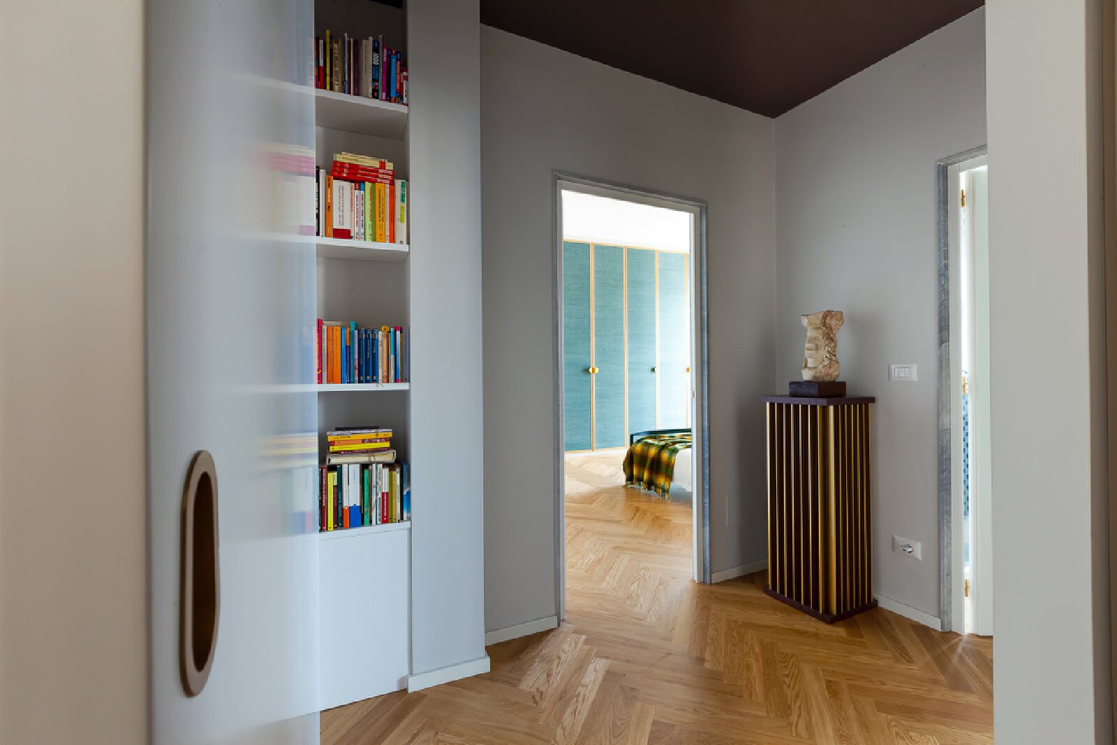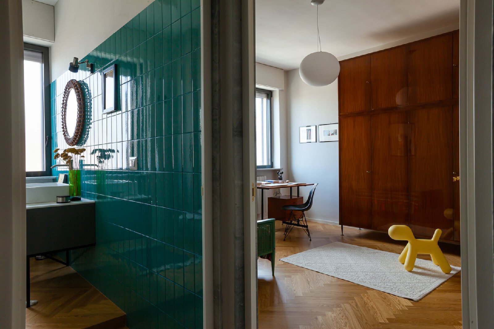 Gli elementi decorativi e gli arredi (sia vintage che disegnati da Claudio) creano un sinergico scambio di suggestioni e donano agli ambienti un linguaggio contemporaneo che non nasconde il carattere originario dell’immobile.