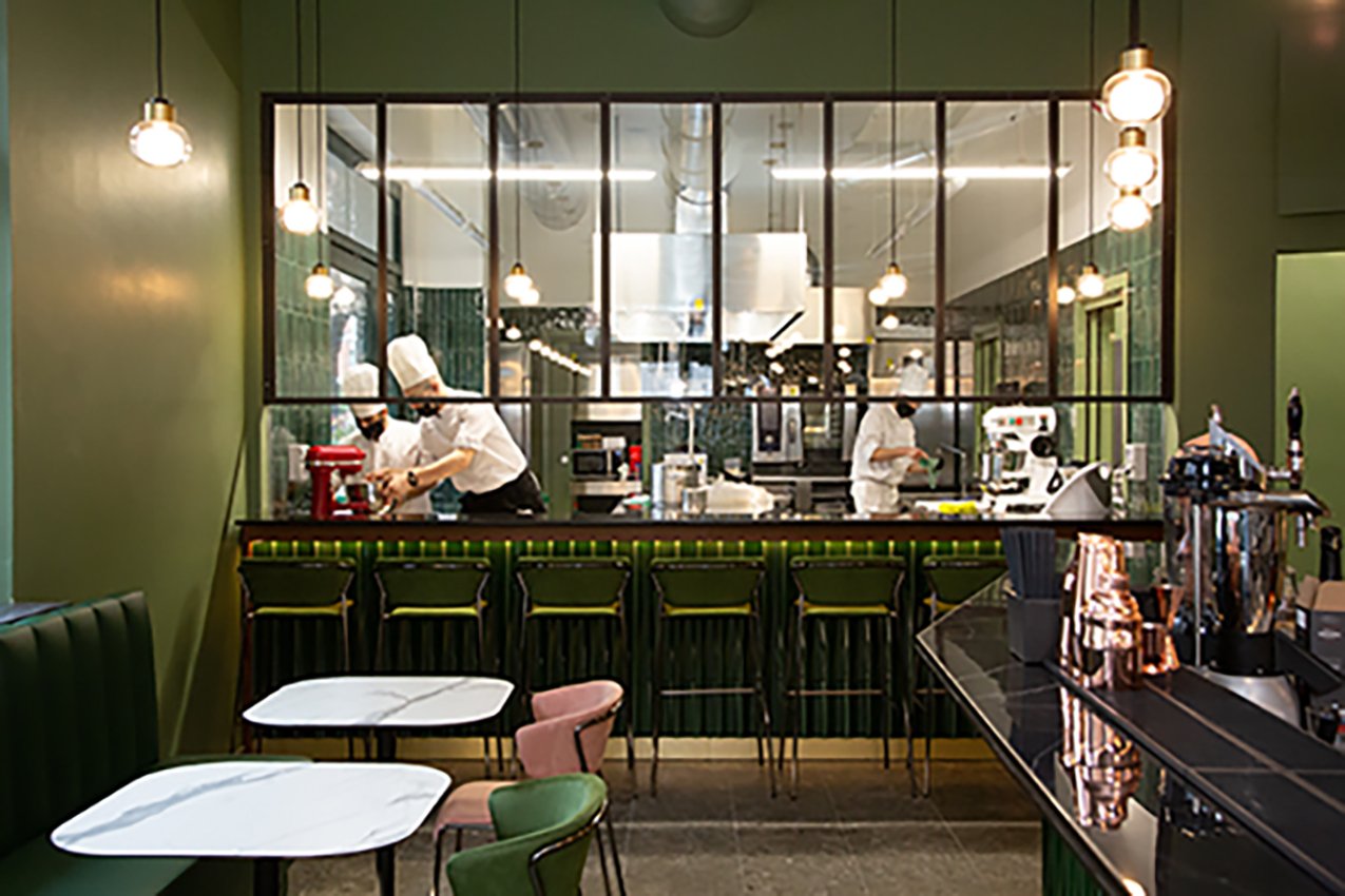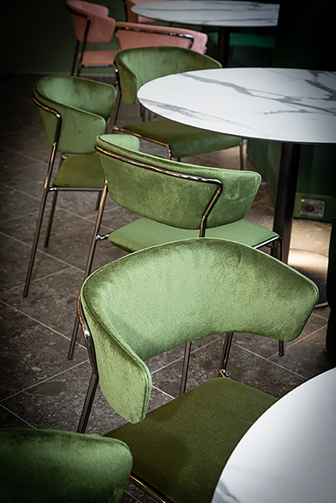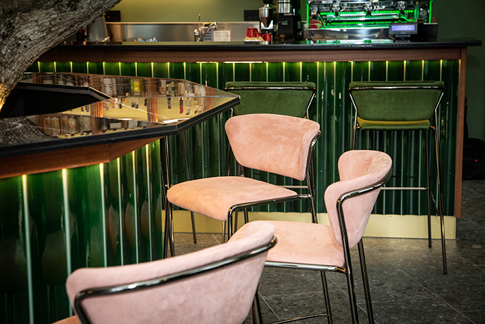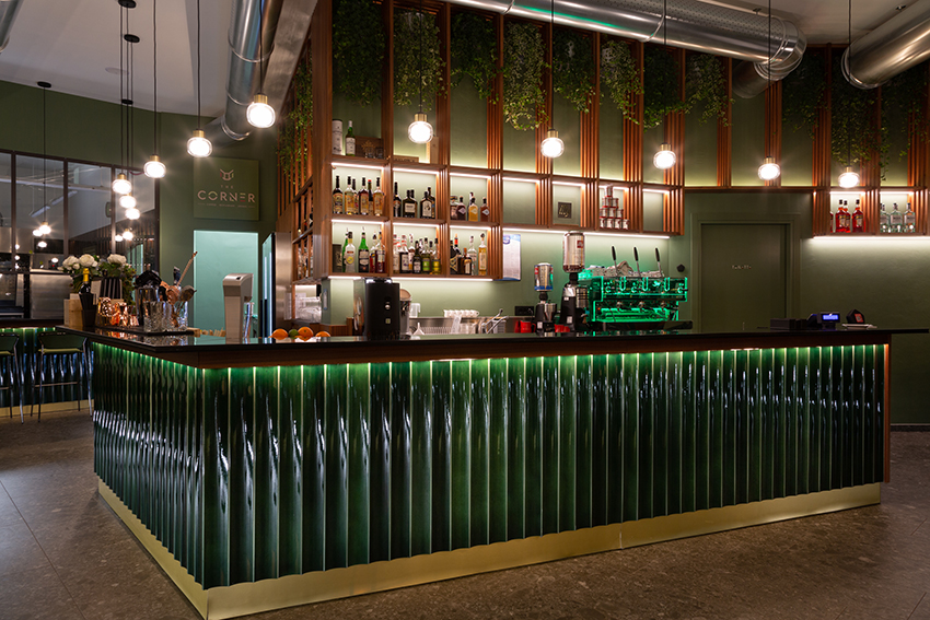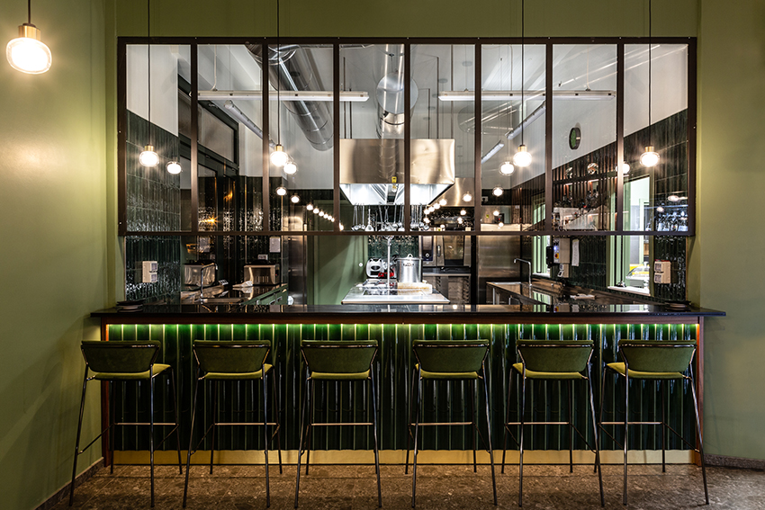 项目提出了受北欧和海外色彩启发的其他地方看到和体验过的图像。绿色,童年、春天和好运的颜色,是舒适和包围室内的联络人。舒适的角落酒吧,在每个城市都会眨眼,邀请您停下来。它通过大窗户故意与绿树成荫且经常拥挤的城市外部对话。大橄榄树的魔力向林荫大道延伸,仿佛要抹去内外的界线。干预押注于振兴城市中一个经常被遗忘的美丽地方。