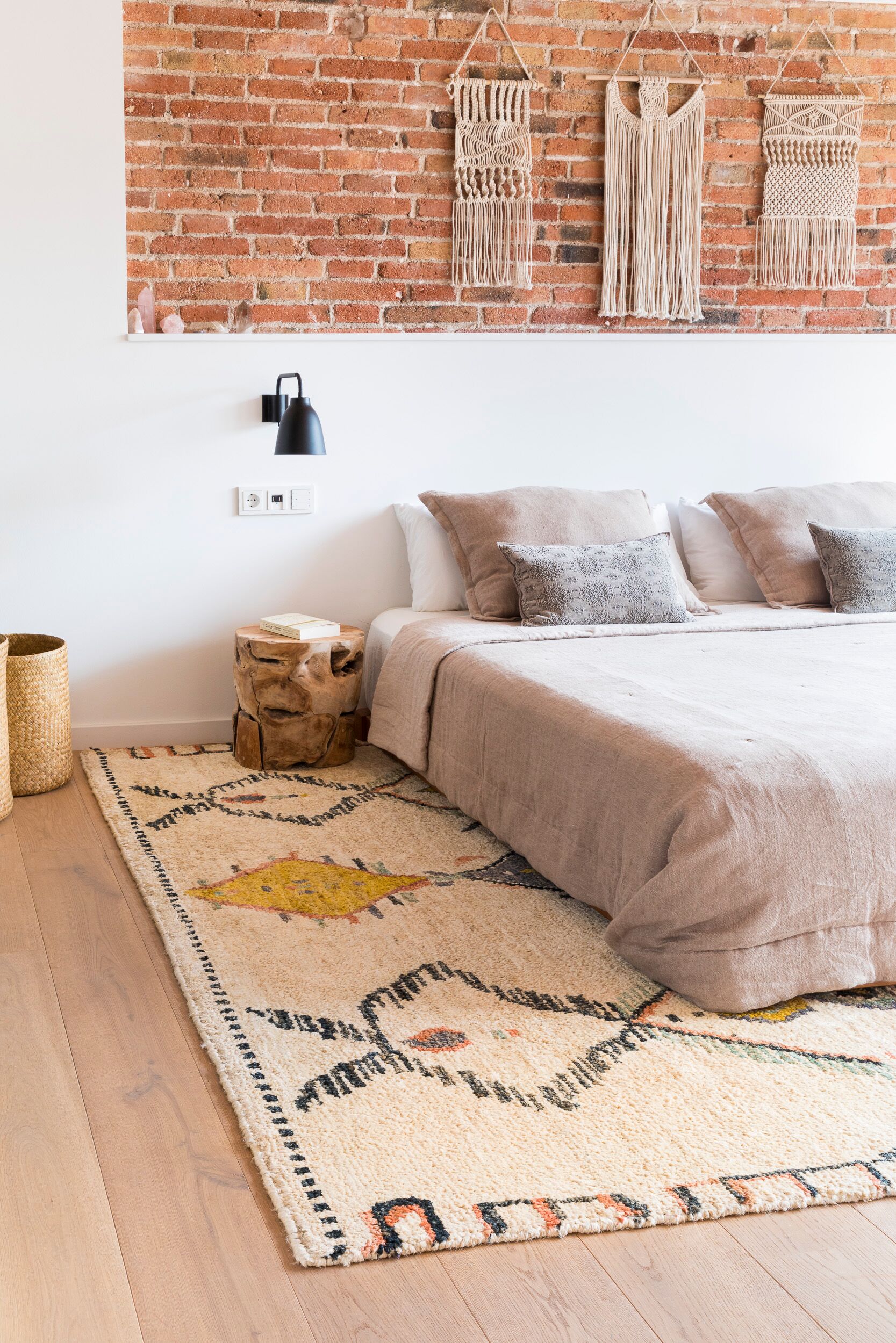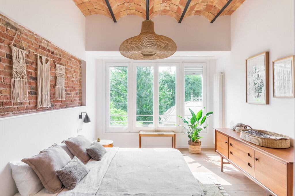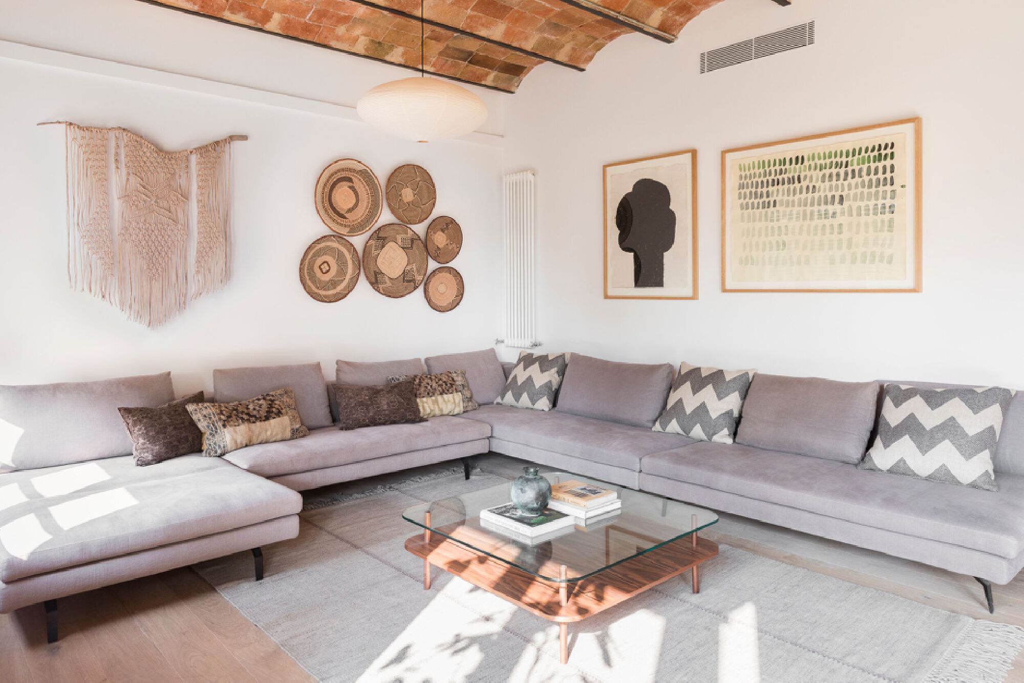 In order to achieve this, we started by changing the apartment’s initial layout into an interactive living space with the kitchen at its heart. By opening up former closed-off spaces we were able to bring in more natural light and create an organic flow throughout the space. We then opted for a décor in soft muted hues, using natural materials and various textures, which all complemented the apartment’s old Catalan vault ceiling. By incorporating key pieces of art as well as commissioned macramé and stoneware the space was given a homely and welcoming feel. The family loves it!