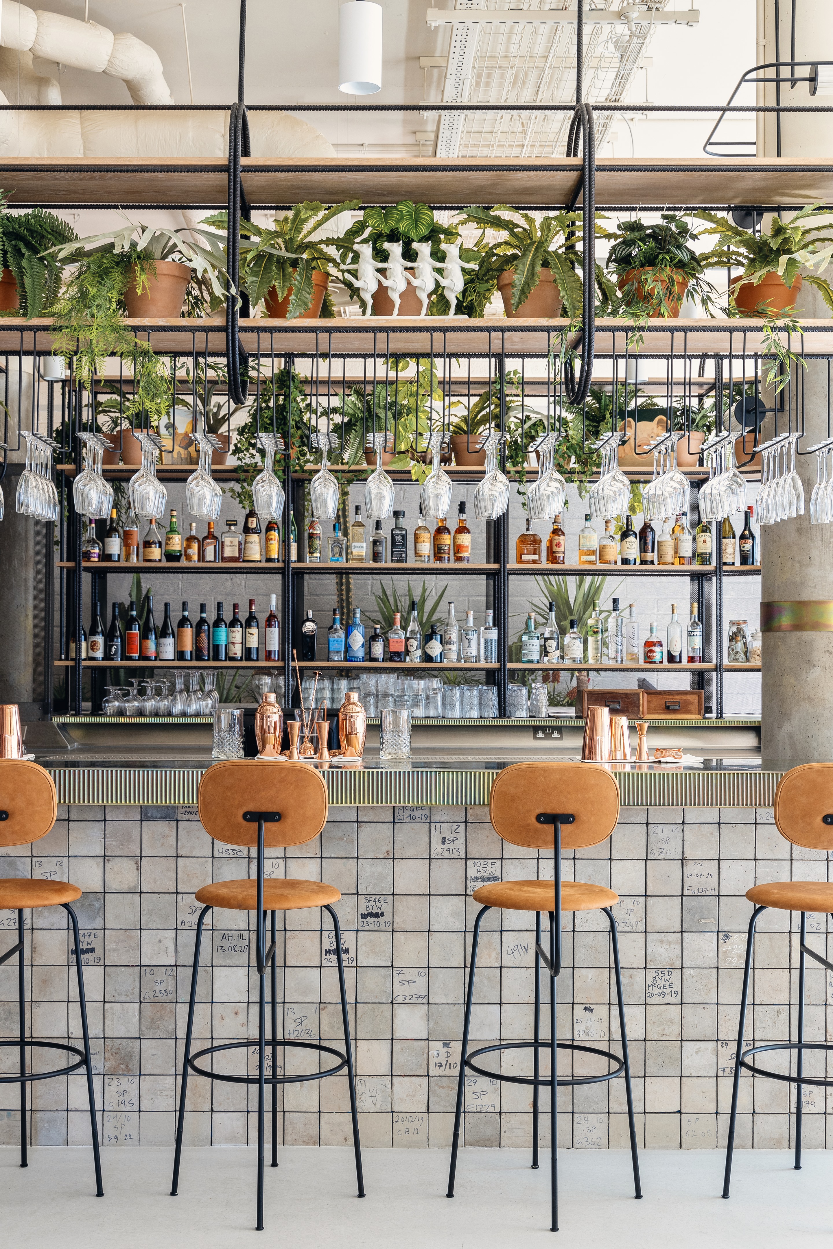 用于垃圾填埋场的混凝土测试立方体在 Bermonds Locke 找到了新的用途,用作底层工作空间中 6 米长的水磨石桌子的底座,并塑造成一个酒吧正面,将在其表面供应 Bermondsey 啤酒英里最好的啤酒。重新利用的钢筋和粘土砖在整个空间中形成装饰性铁制品和细木工元素。