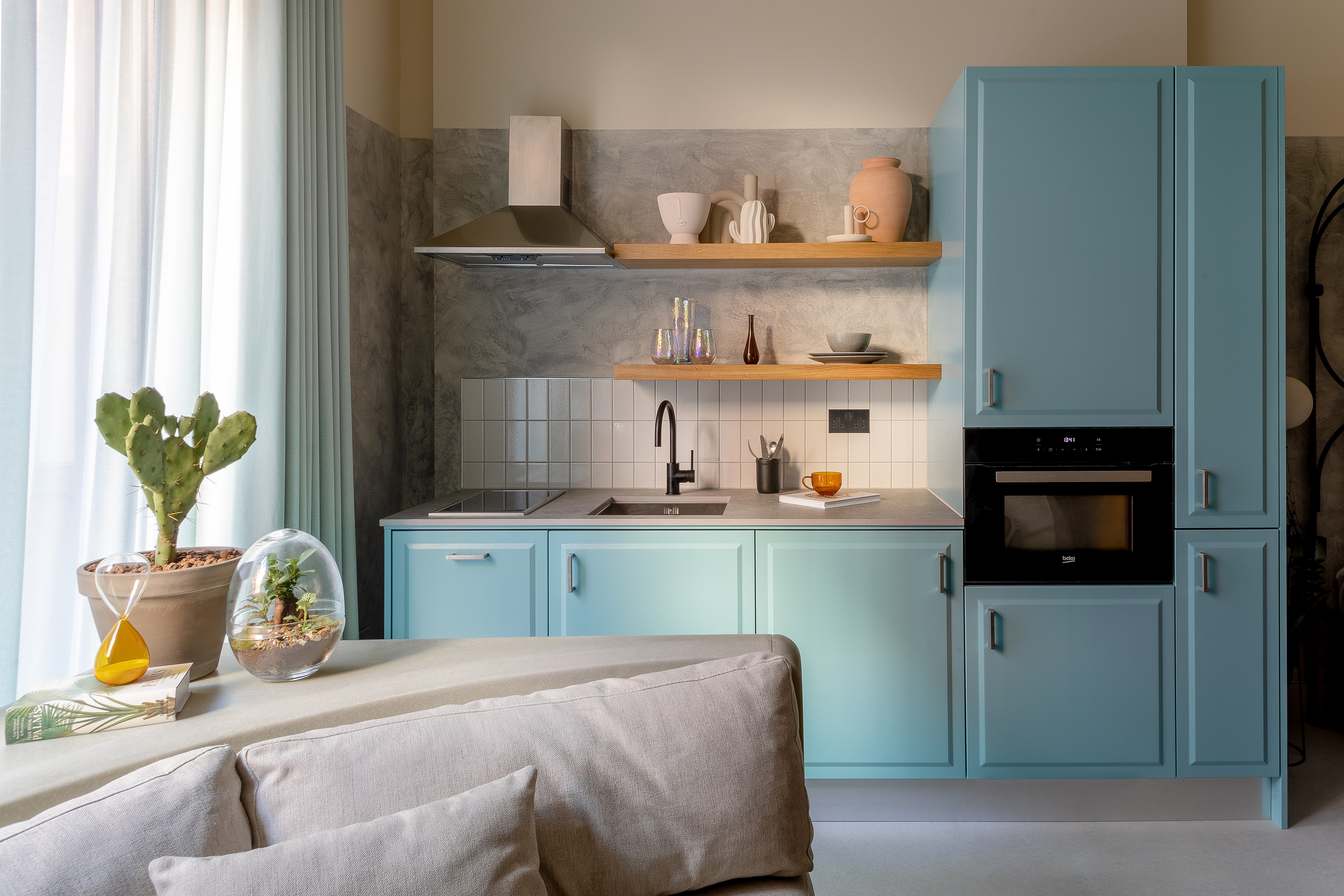将沙漠日落的渐变渐变带到伦敦南部,Locke 位于上层的标志性功能起居室将浸入蓝色、米色和灰色的色调中,而在较低的楼层则采用饱和的鲜红色。工作室设计了定制的模块化沙发,手工制作使用沙子和树脂铺层来重现沙漠的色调。粗锯木地板欢迎用踩踏的台阶标记古铜色。