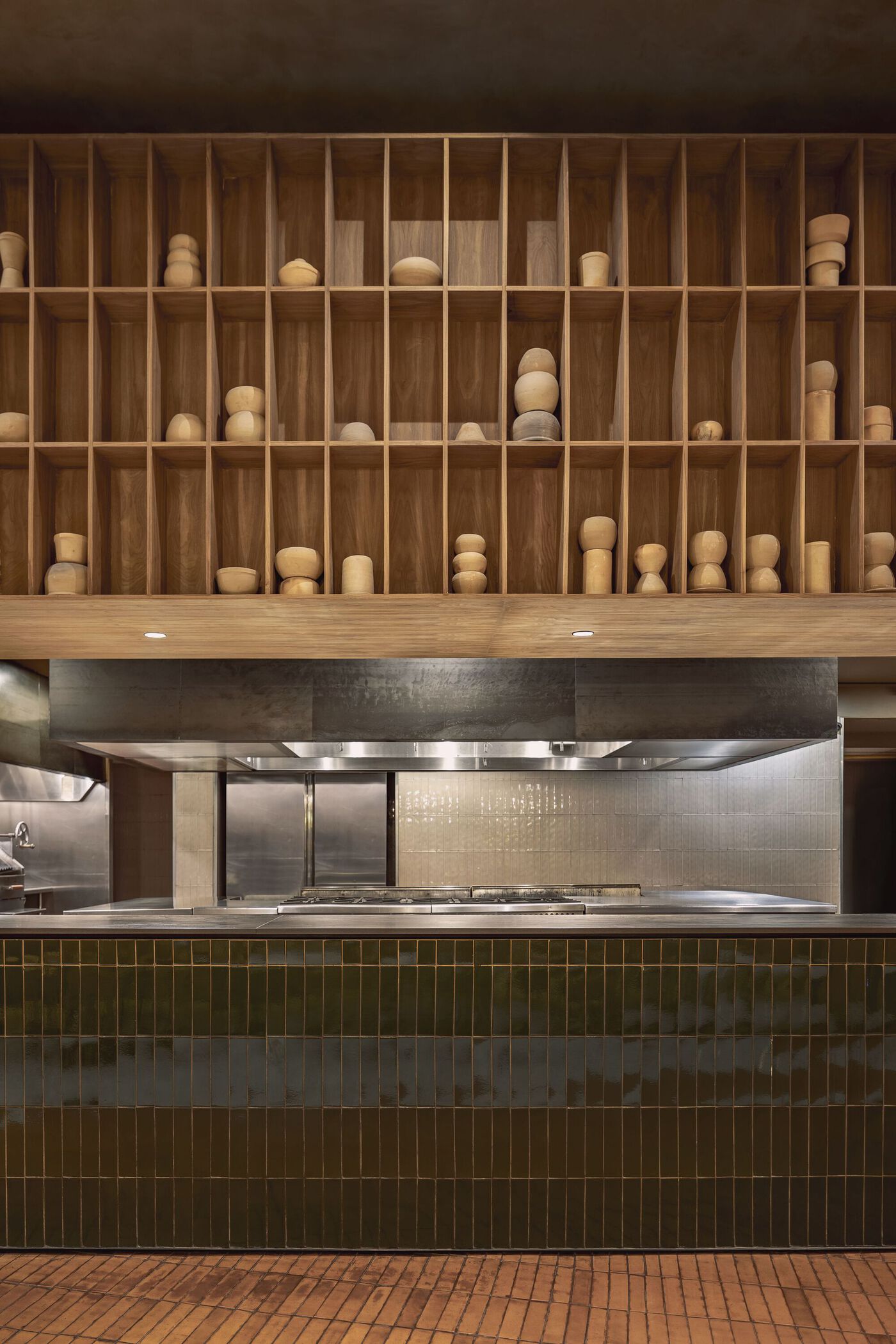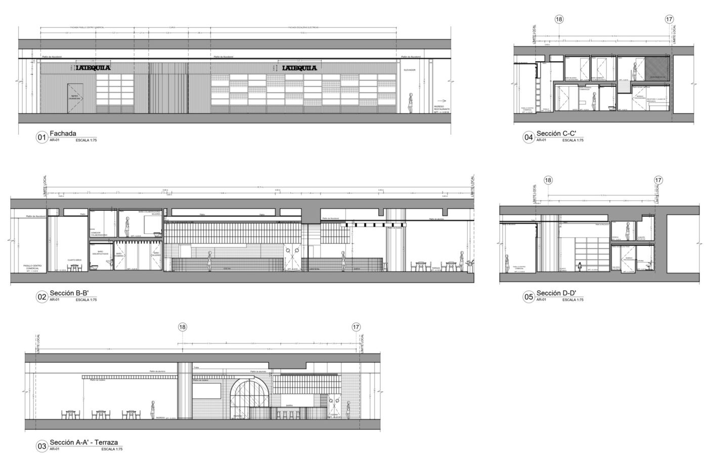 这个程序相当简单。后面的区域,包括厨房、产品接待处、员工浴室和办公室,分布在两层,约占总容积的40%。同时,房子的前面占据了餐厅剩余的60%,被划分为3个不同的区域:一个内部大厅,非常适合家庭聚会,它面对厨房的开放p,靠近浴室和儿童俱乐部;酒吧正前方有一个大型的半户外区域,可以容纳不同的座位配置,可以欣赏到邻近商业区的美景;还有一个相邻的露台,可以用一系列的纺织窗帘围起来,作为私人用餐区。