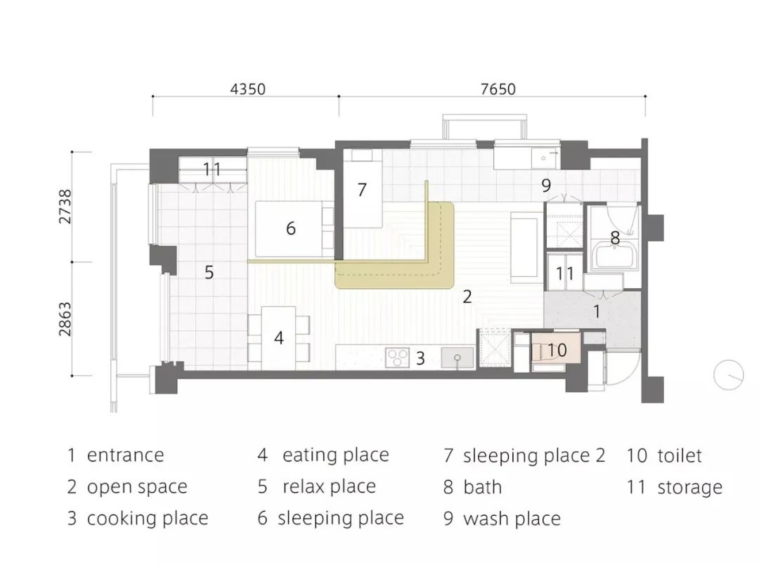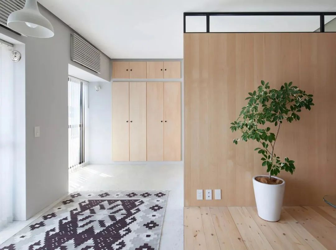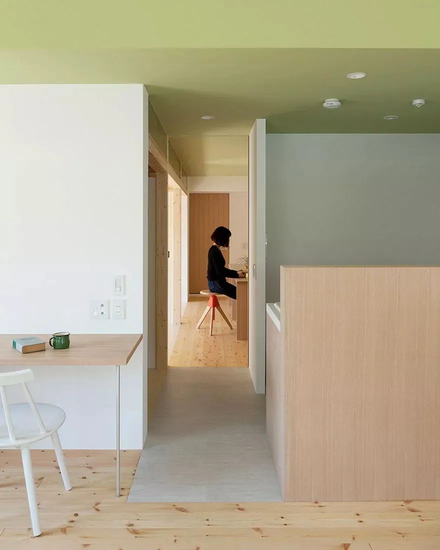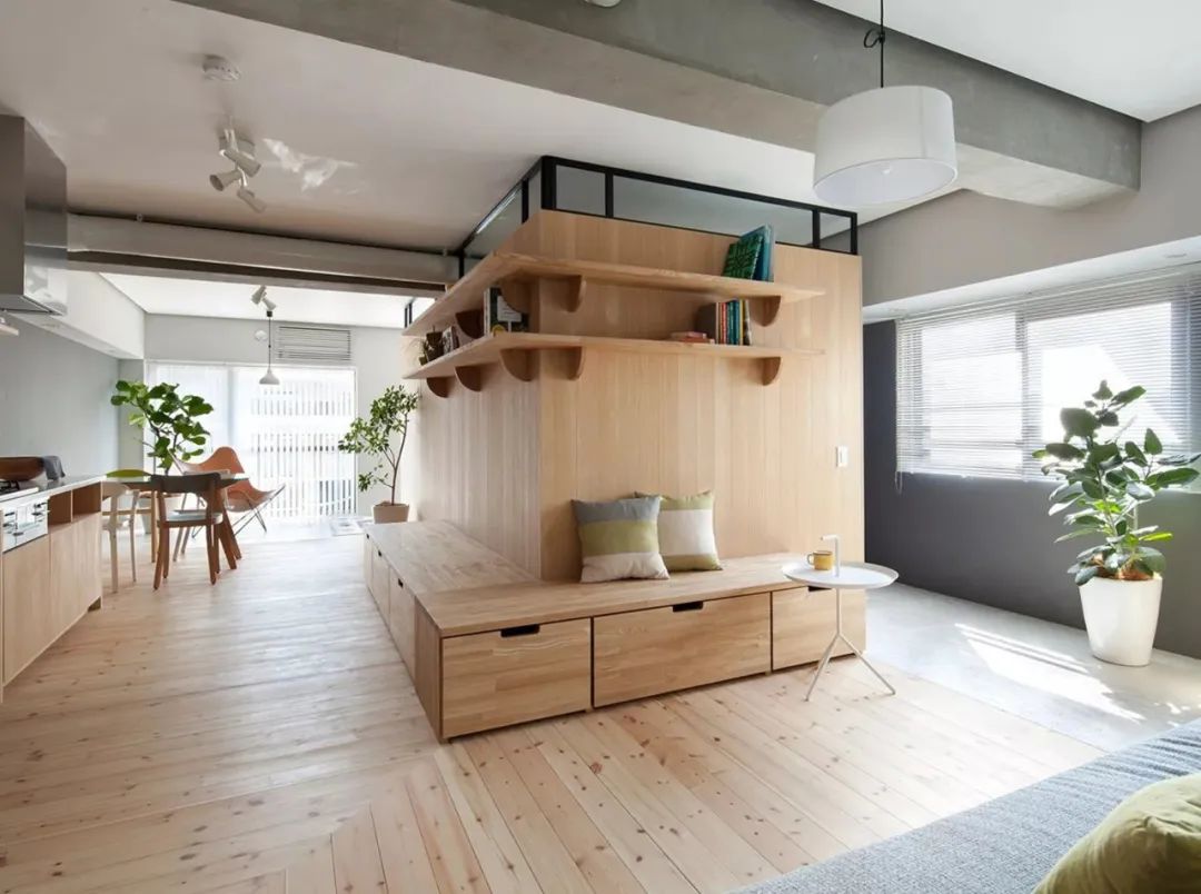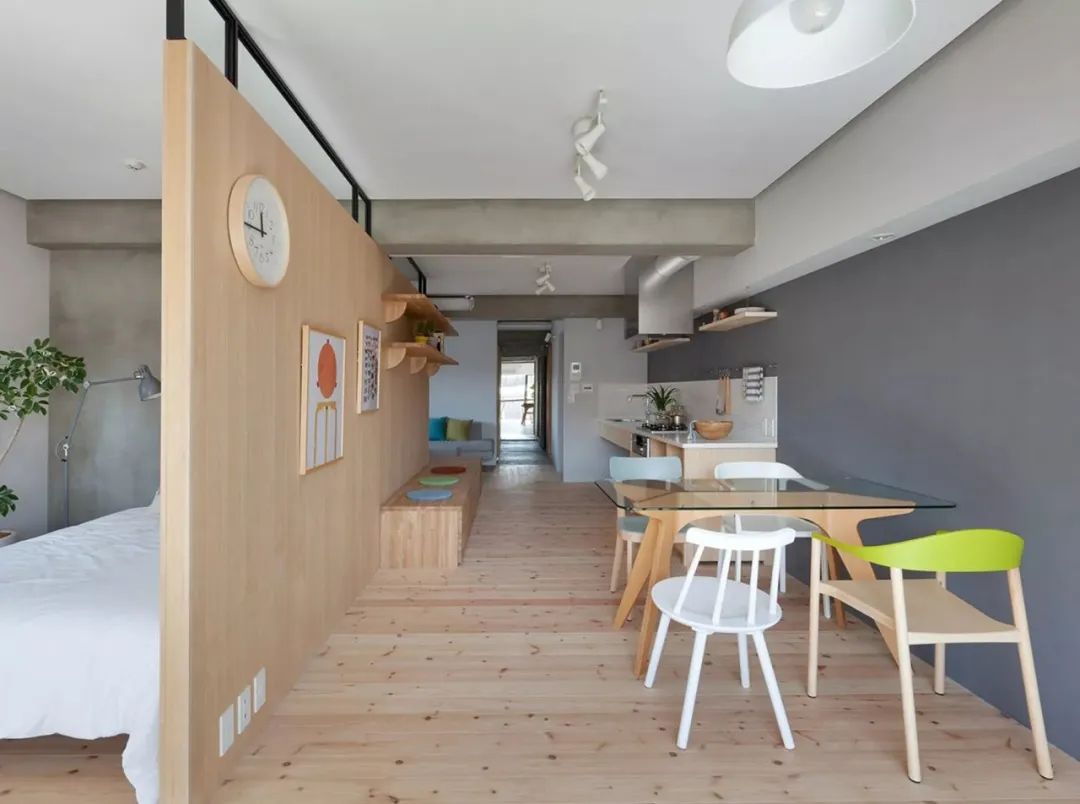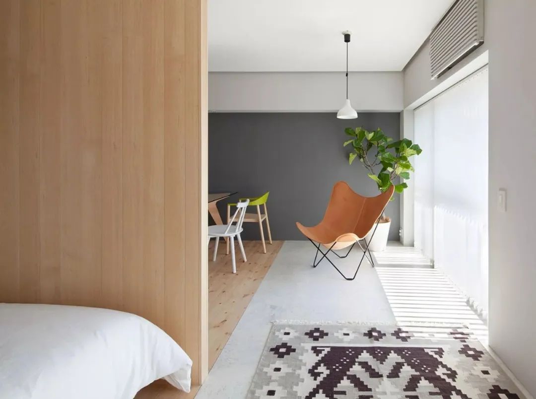 这间公寓的设计非常巧妙,大分区是为了创建一个私密的睡眠空间,而没有封闭。Wood Island在其扩展过程中占据了多个功能,图书馆,储藏室,小客厅,内部设计电磁学吸睛并允许组织所有空间。浅木和混凝土通过一些色彩鲜艳的触感,植物和环境亮度增强。