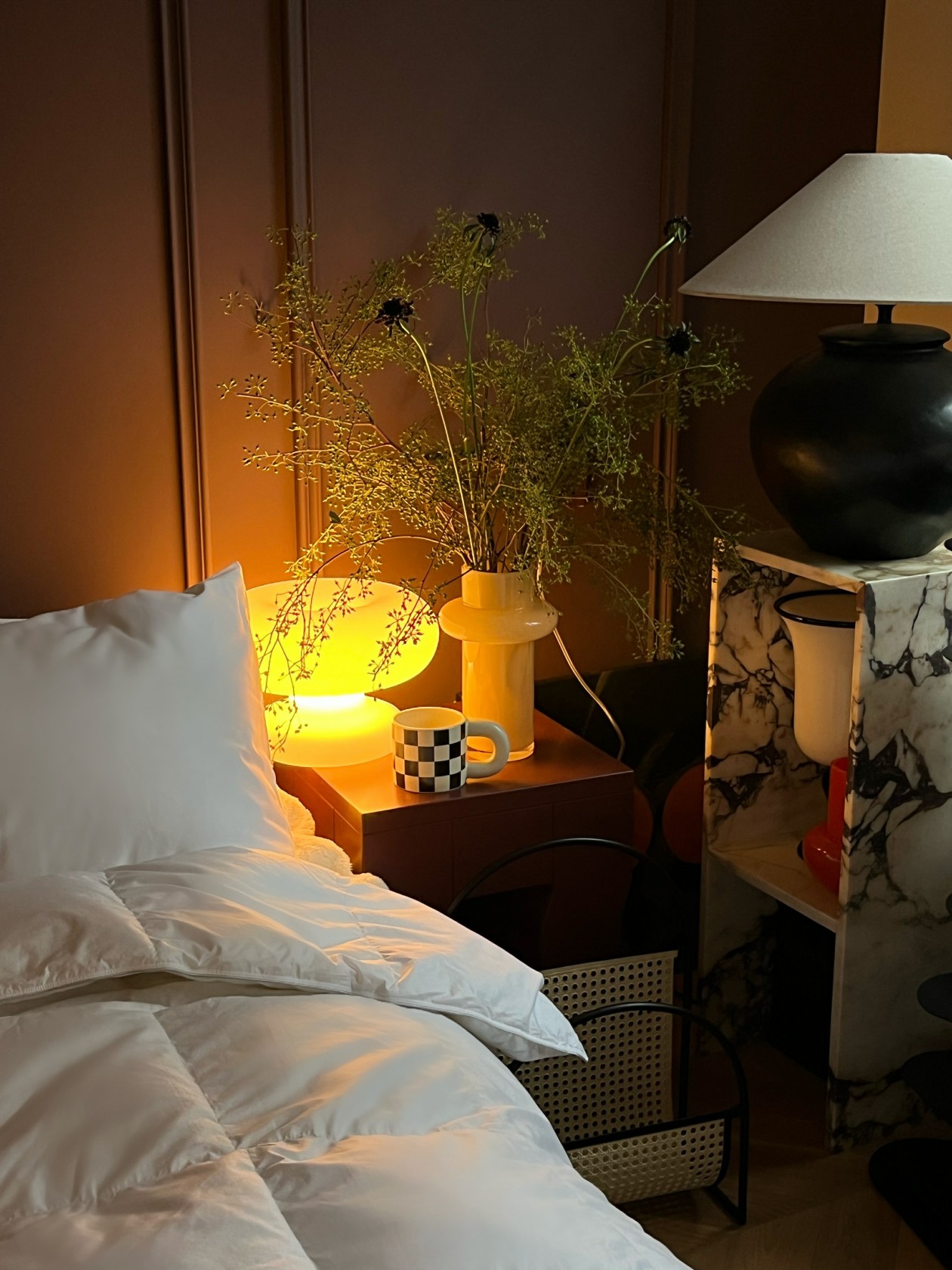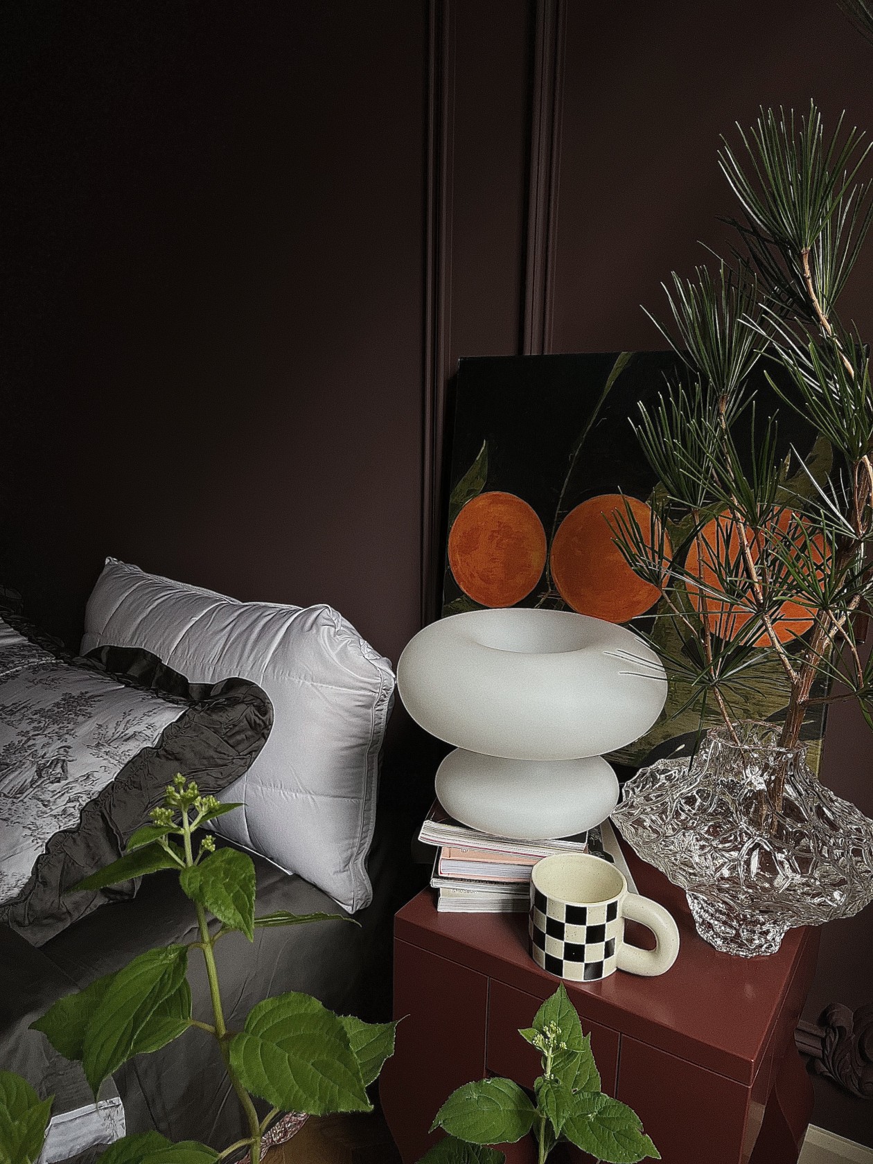 浓郁温柔的深色背景仿佛一杯冬日的热巧克力,释放着甜蜜与好睡的信号。