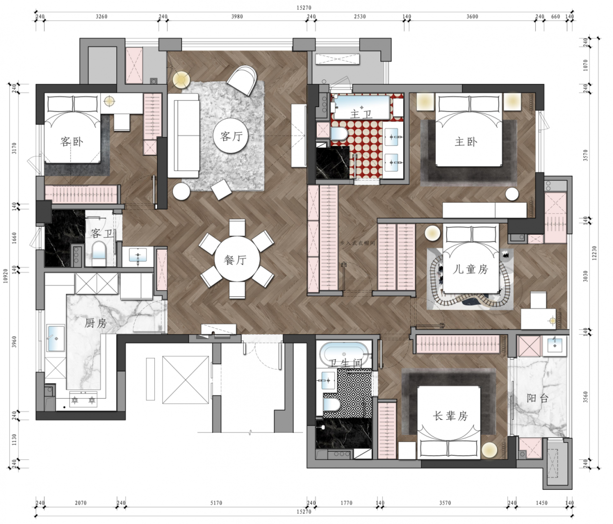 打通南面阳台,南移儿童房空间,让主卧作为私密空间的同时拥有大容量衣帽间与宽敞的独立卫生间。