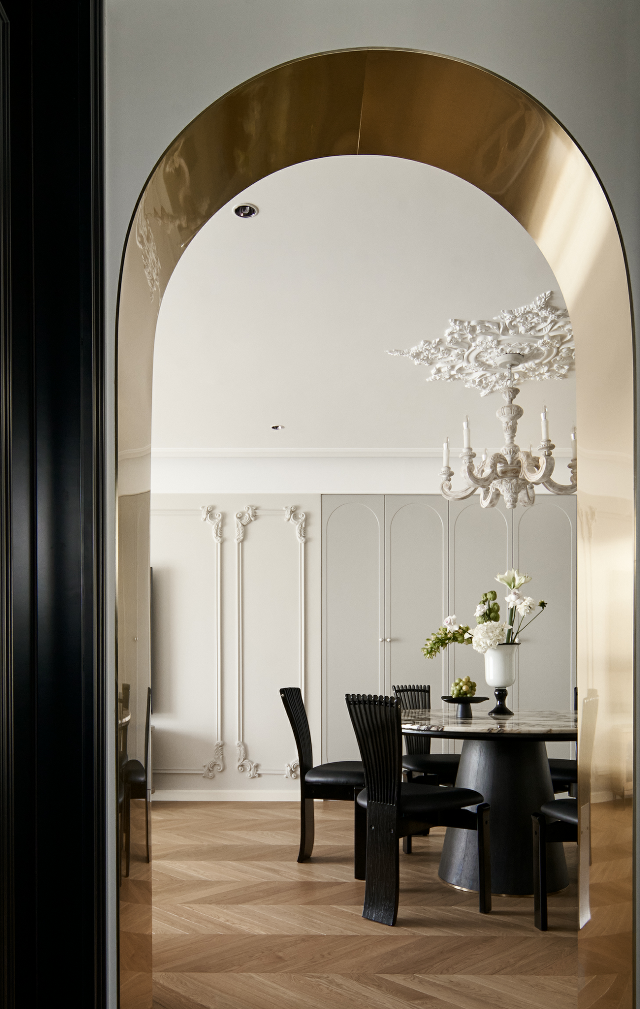 光滑的黄铜饰面带来戏剧般梦幻的视觉感受
