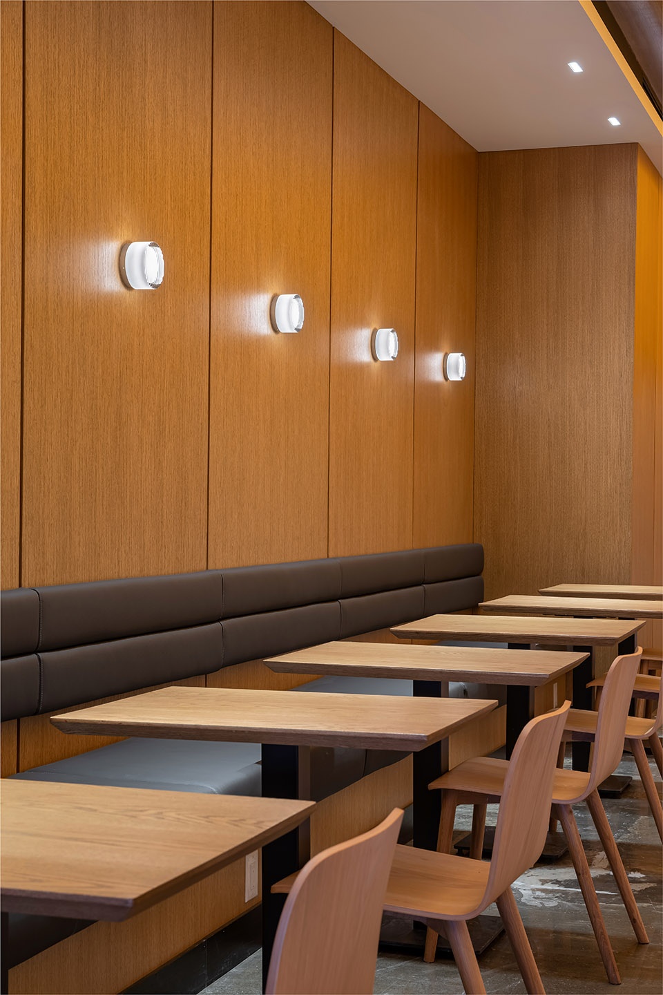 狭长的168平方米空间内需要满足三个关键要求:送货/取货订单空间、店内顾客可以不受打扰地交谈和用餐的隐私空间,以及易于接近且高度可见的前厅。
