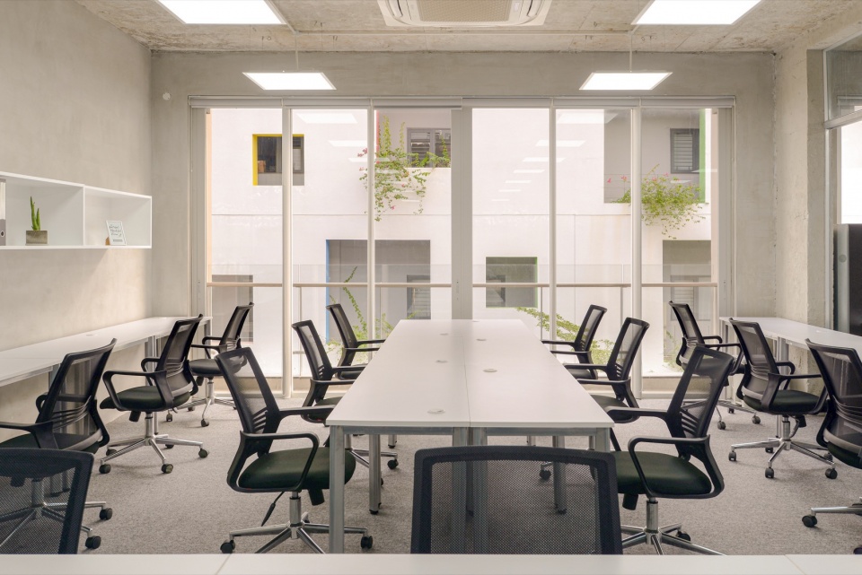 Located in the dynamic Thu Duc city area with many development opportunities. This project aims to create a flexible space enabling the business to evolve, still focused on the quality of life of their employees. The initial status is 2 lots of townhouses that have been designed and partially built. Each one has a footprint of 7 x 15 meters and six levels.
