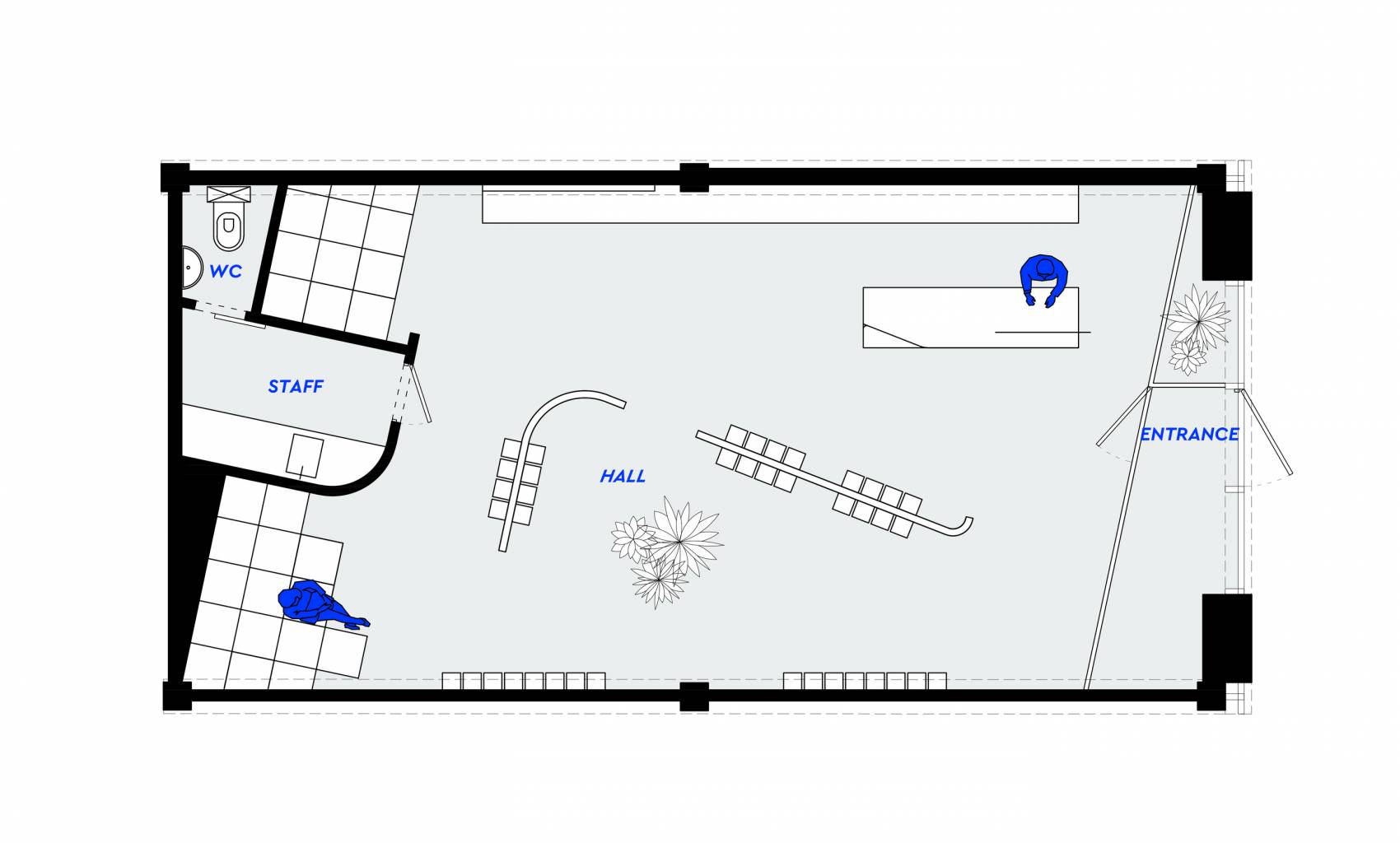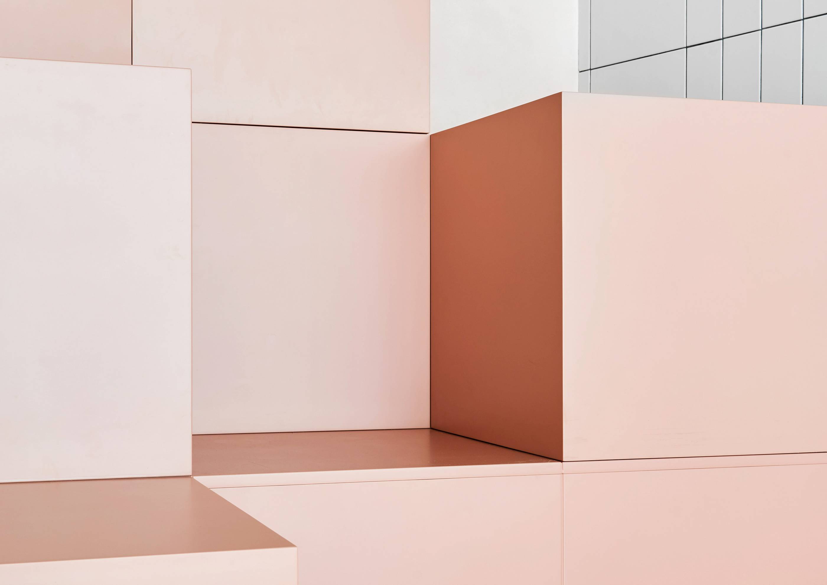 大厅的组成是一个粉红色的圆形剧场,由从地板上生长的移动立方体组成。这些立方体也可以转变为游客的休息区。