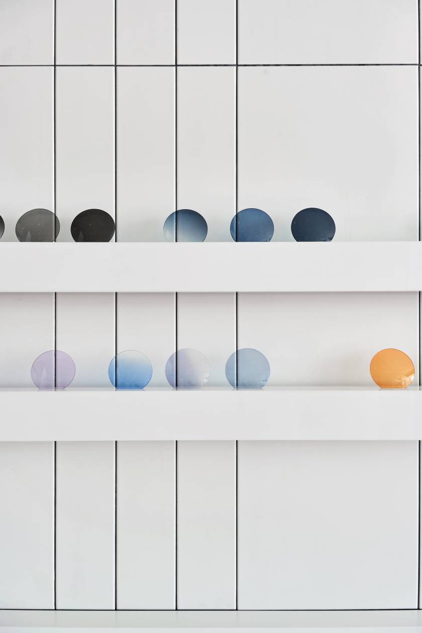 主要艺术品是一块半透明弯曲的聚碳酸酯,具有柔和的颜色渐变,溶解在空间中。