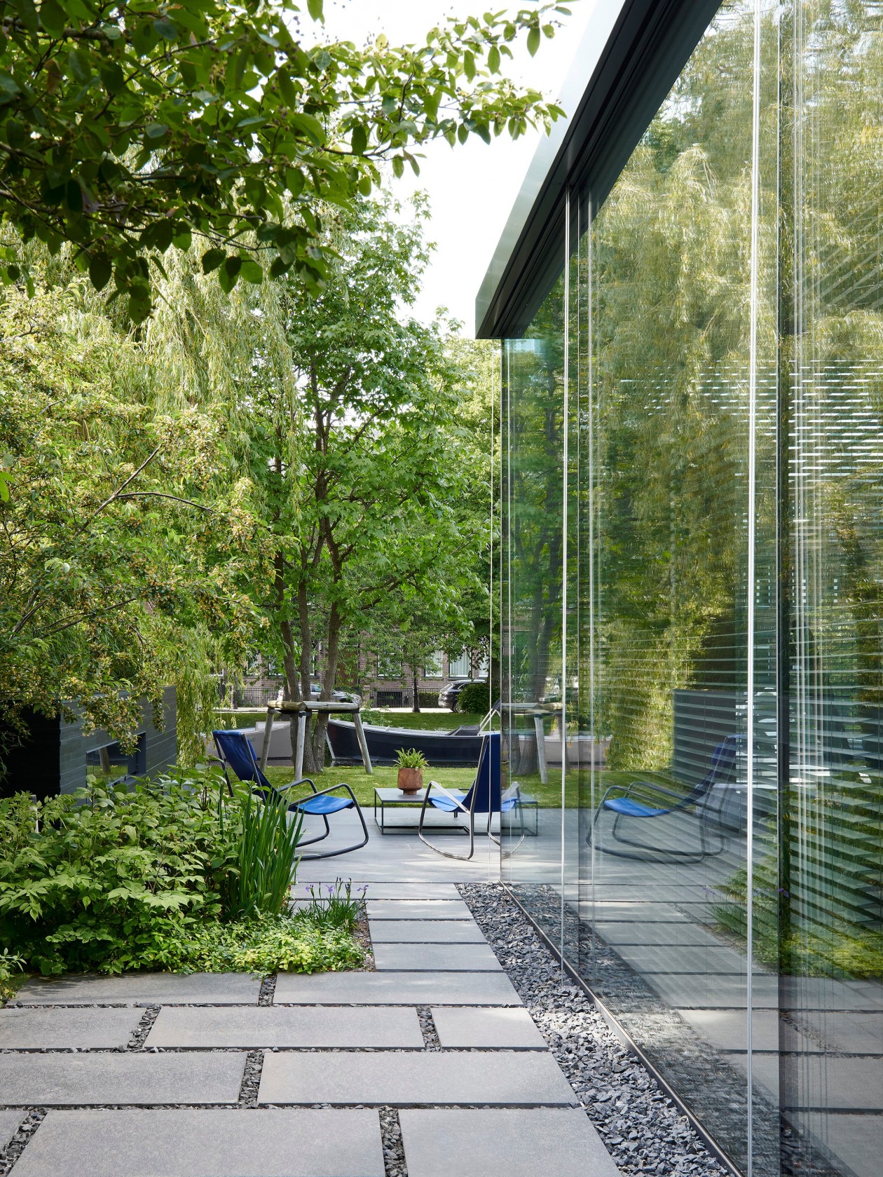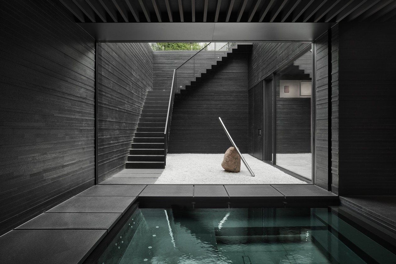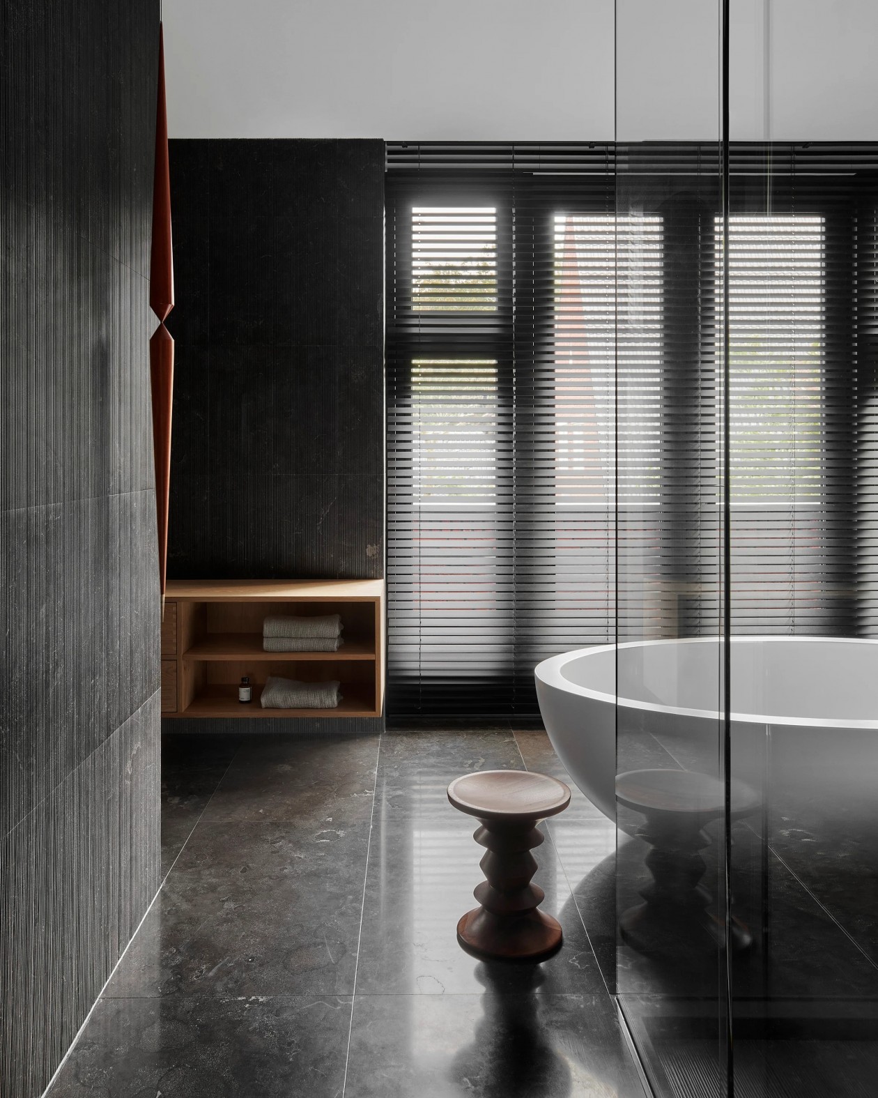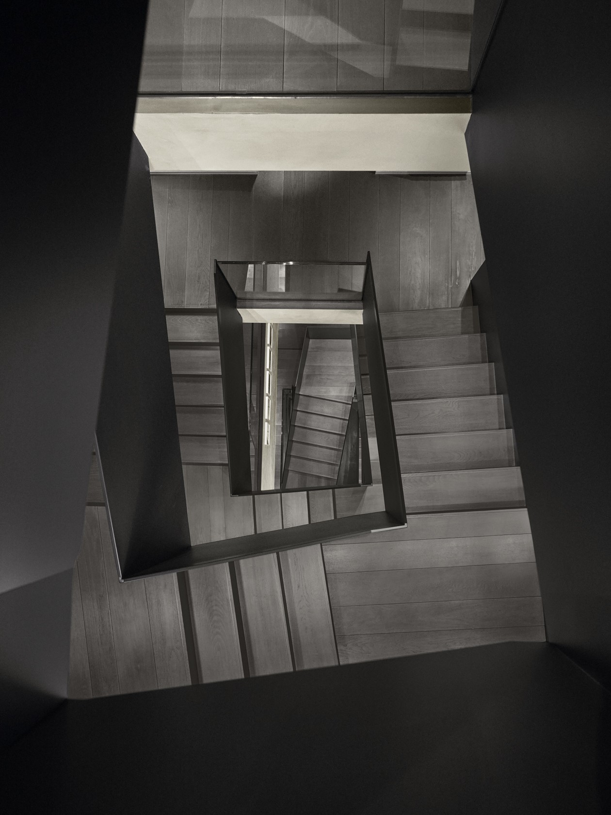荷兰私人住宅项目自1927年起融入北欧风,创新演绎传统复杂性,构筑古今交融的和谐对话。当代设计体现在斜顶的黑色金属箱体元素与北欧陡峭屋顶几何形态的对比中,引入光线并拓展景观视野。内部底层开放式布局配以壁炉、穿透五层的楼梯等实体核心,光线充盈空间,柔化深色调材质。中性色彩内饰搭配现代家具及艺术点缀,楼梯作为独立木质铁艺结构,展现楼层间层叠之美。
