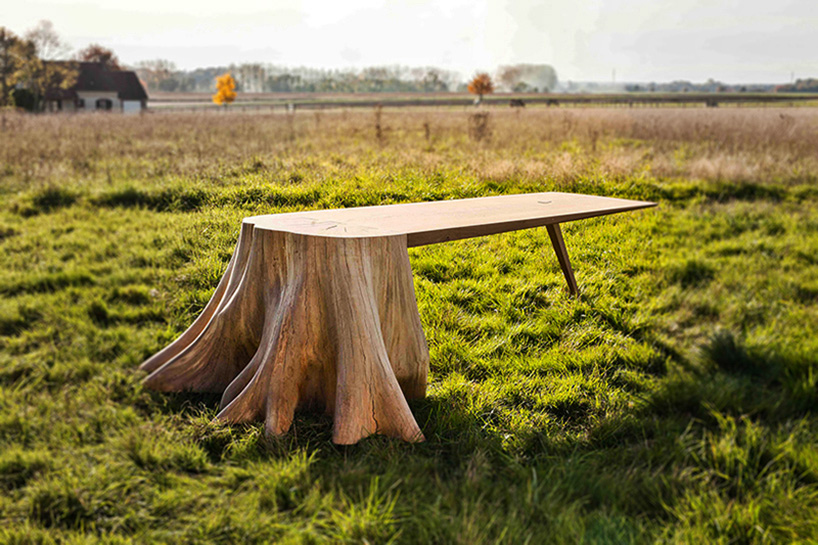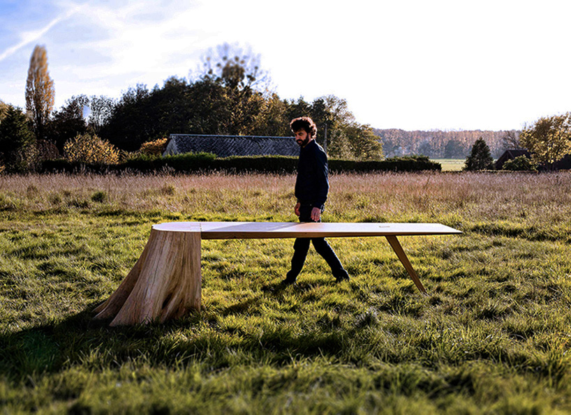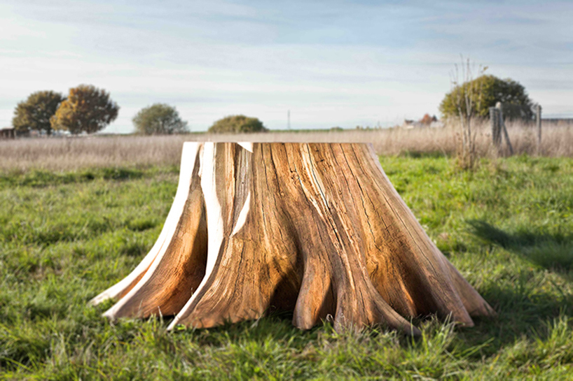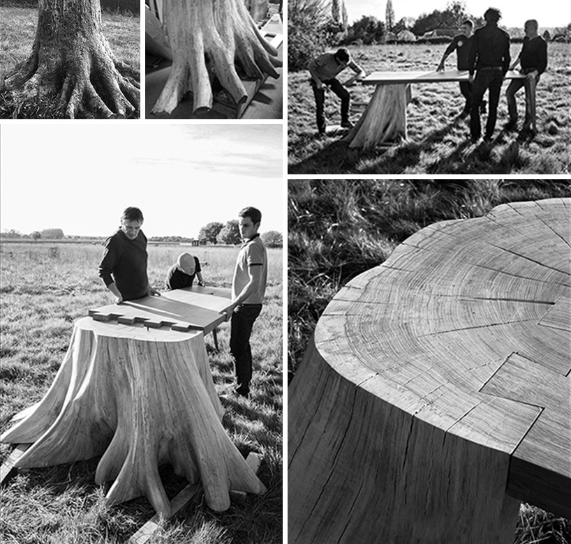 来自于法国的产品设计师thomas de lussac 设计了一款名为“racine carré”(在英文中是平方根的意思)的定制桌。该设计历时八个多月,生动形象地展现了位于法国东北区域树墩的美感。最终成型的作品展示了每个阶段的手工过程,从最开始的连根拔起到最后的砂纸打磨,优美的纯天然桌子依靠在一根木制的桌腿上。“racine carré”是由perchebois的工匠E. chartrain, bouhours与gautier亲手制作而成的设计资讯网站。