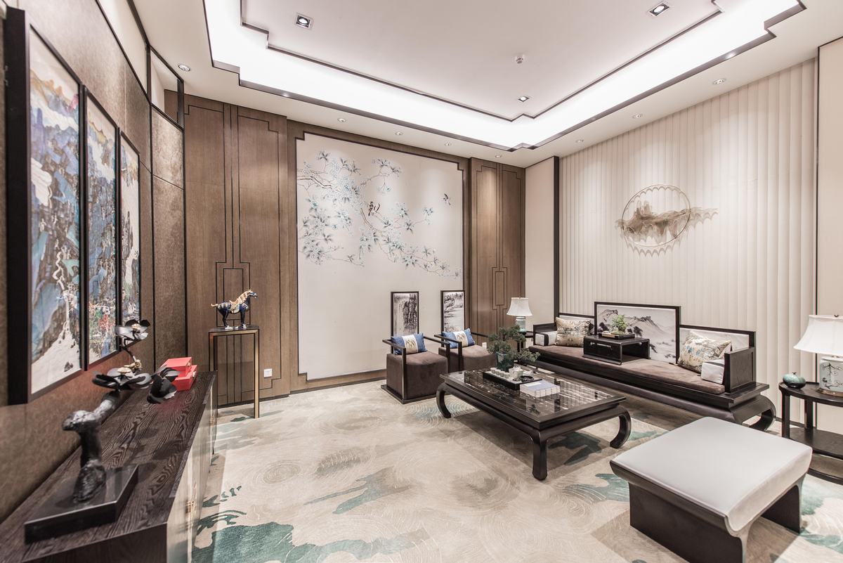 对整个售楼处的中式元素处理上我们希望做到大处见刚,细部现柔,在视觉上既能带动空间的节奏感,在整体的软装上我们做到动静有度,色调做到细腻,克制而不张扬,中国红的局部运用也是希望能增强空间视觉上的节奏感,体现出刚柔并济的中式美学态度。