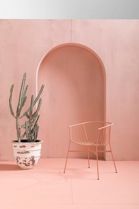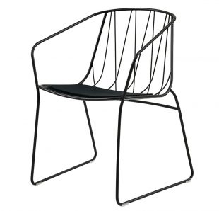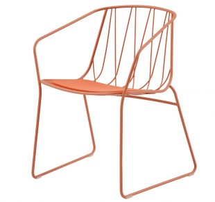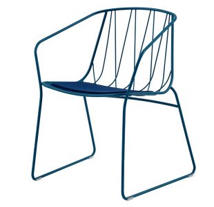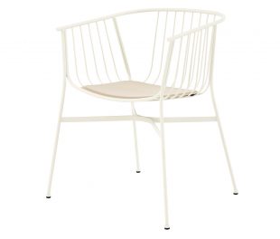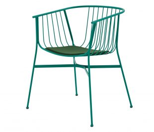 琪椅由一系列弯曲的金属线条勾勒而成,其外形优美且实用性良好。扶手椅的靠背在金属丝的交织下变幻成美丽的形态。该系列座椅满足室内外使用需求。并可以搭配靠垫及坐垫使用。