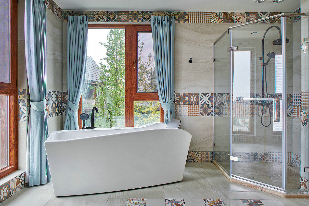 主要用材:犀牛瓷砖、汉斯格雅洁具、科勒洁具、图森木作、本杰明涂料、美萨门窗