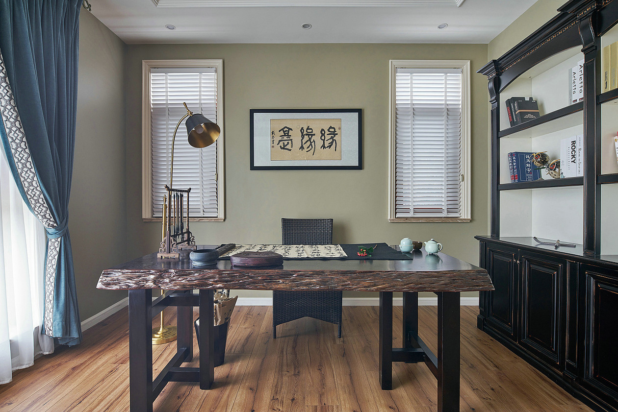 颇具传统文化韵味的书房,满足业主的兴致所在,于这里读史鉴今,挥毫泼墨,坐享无限的古朴静雅。