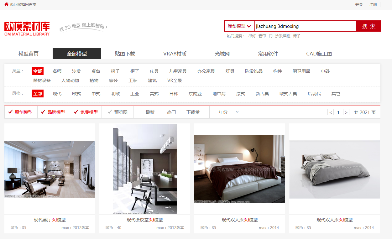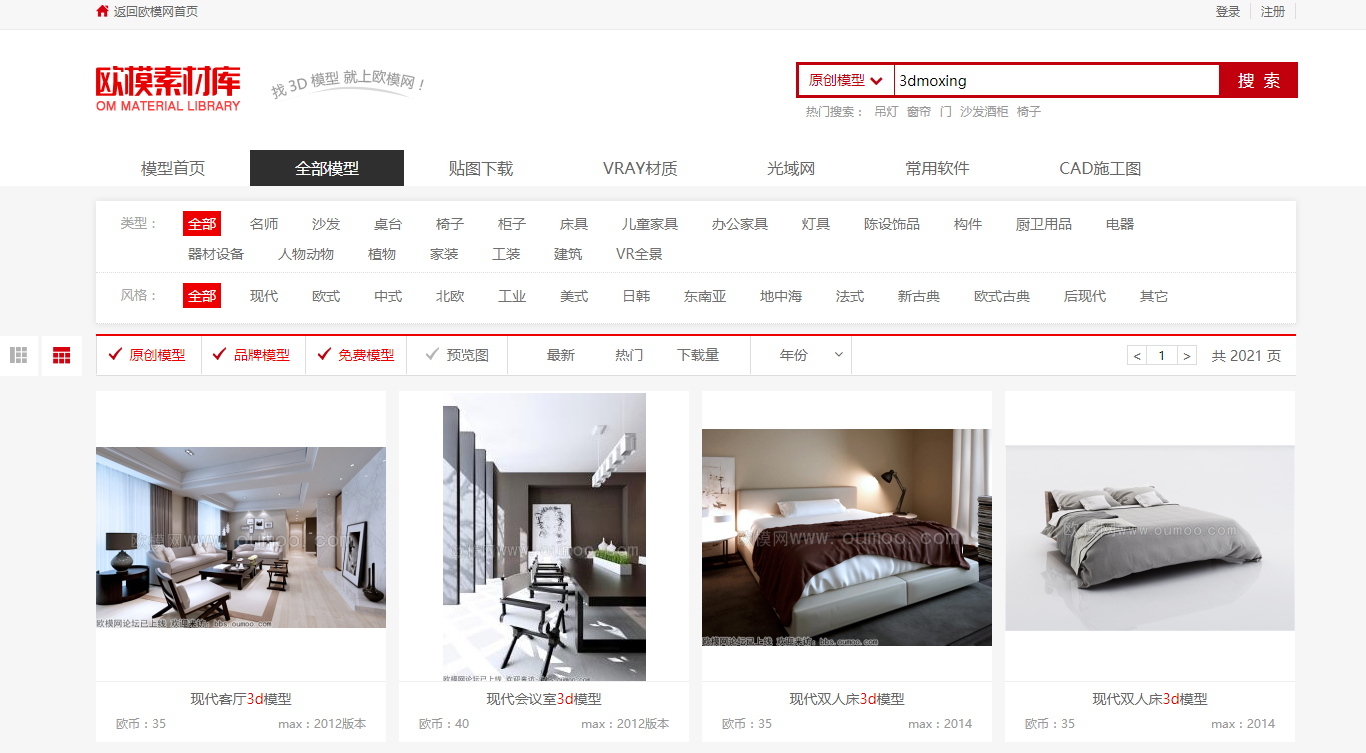 欧模网详解,如何在站内搜索“3dmoxing”,找到免费3d模型。其3dmoxing由国内外顶尖的设计公司/效果图工作室上传共享,为100万设计师提供免费的3d模型素材下载!