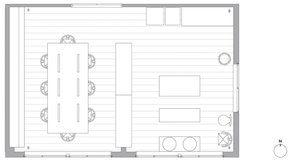 家具部分,设计师采用了一种暗含木纹的橄榄色饰面,希望随着时间的流逝展示出它独特的味道。
