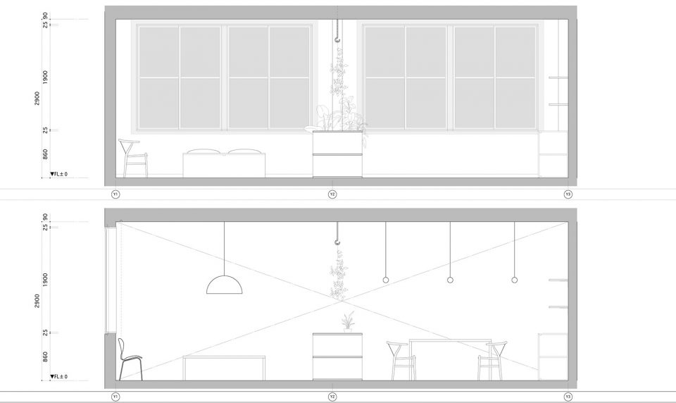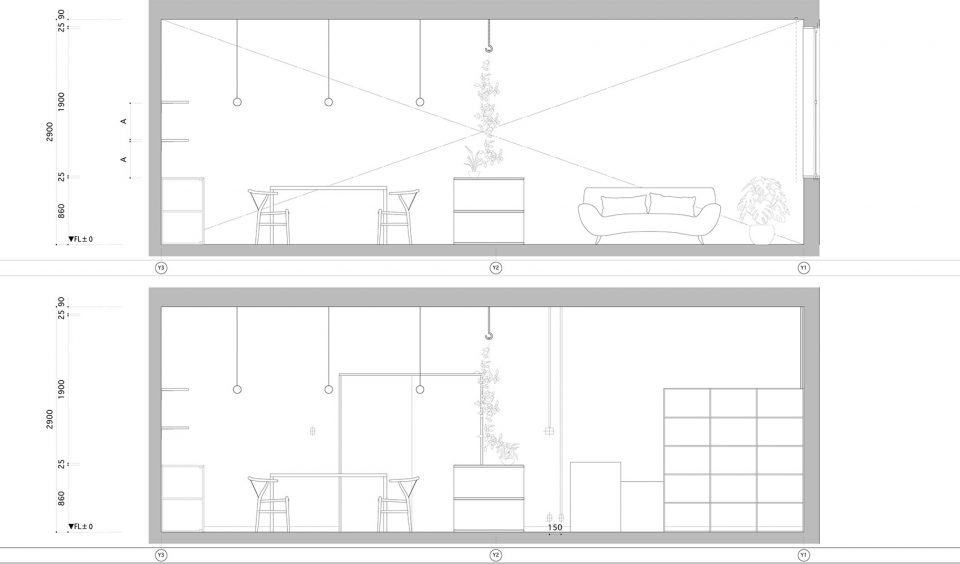 这是一个对CHICHI平面设计公司进行办公室室内设计的项目。这间办公室位于大阪市肥后桥的一栋昭和初期的西式建筑内。