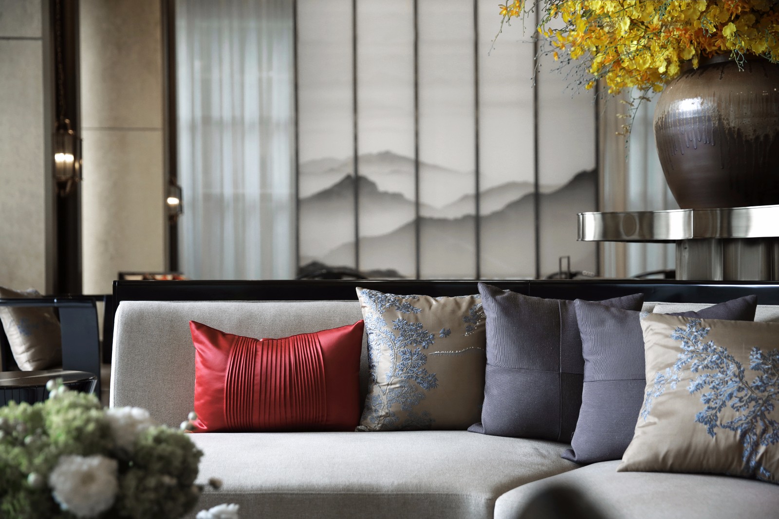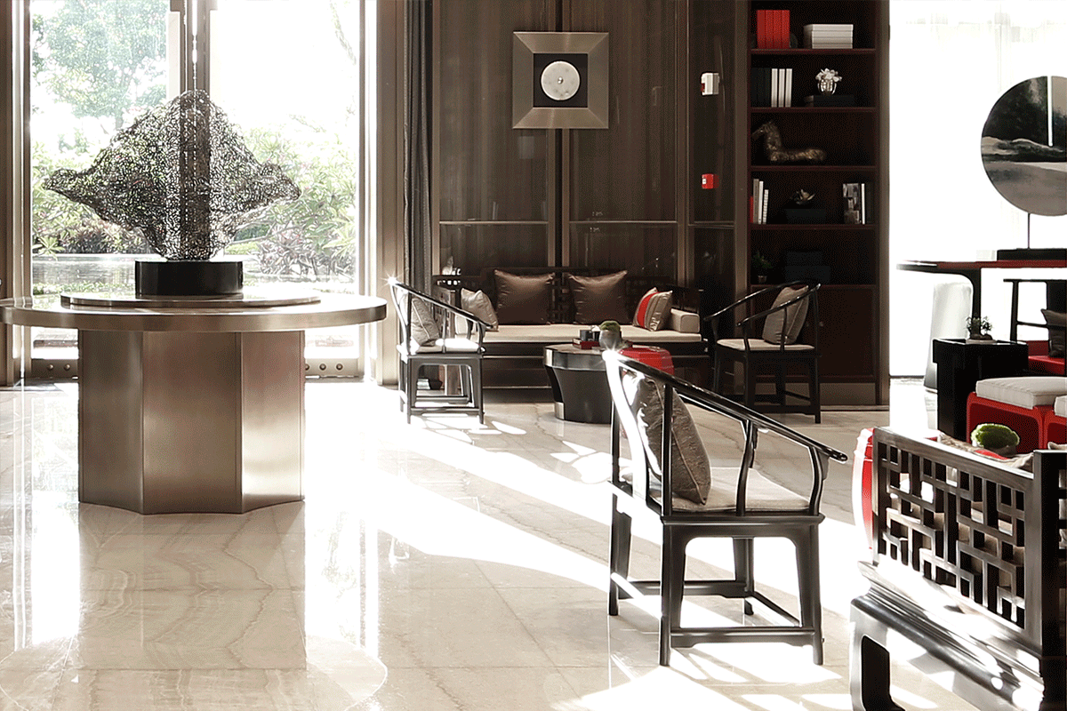 俨然屋宇下,墨白素雅的空间里,设计师赋予器物陈设古朴的型制,光影下的富雅,在灵魂深处灿溢涌动出古典的情蕴,尊贵、优雅的生活方式于此蔚然成形。崭新的宫殿楼阁,少了一点沧桑,多了一份自然浑和与动人心魄。蔚为大观的艺术世界,品咂不尽的悠悠情味。