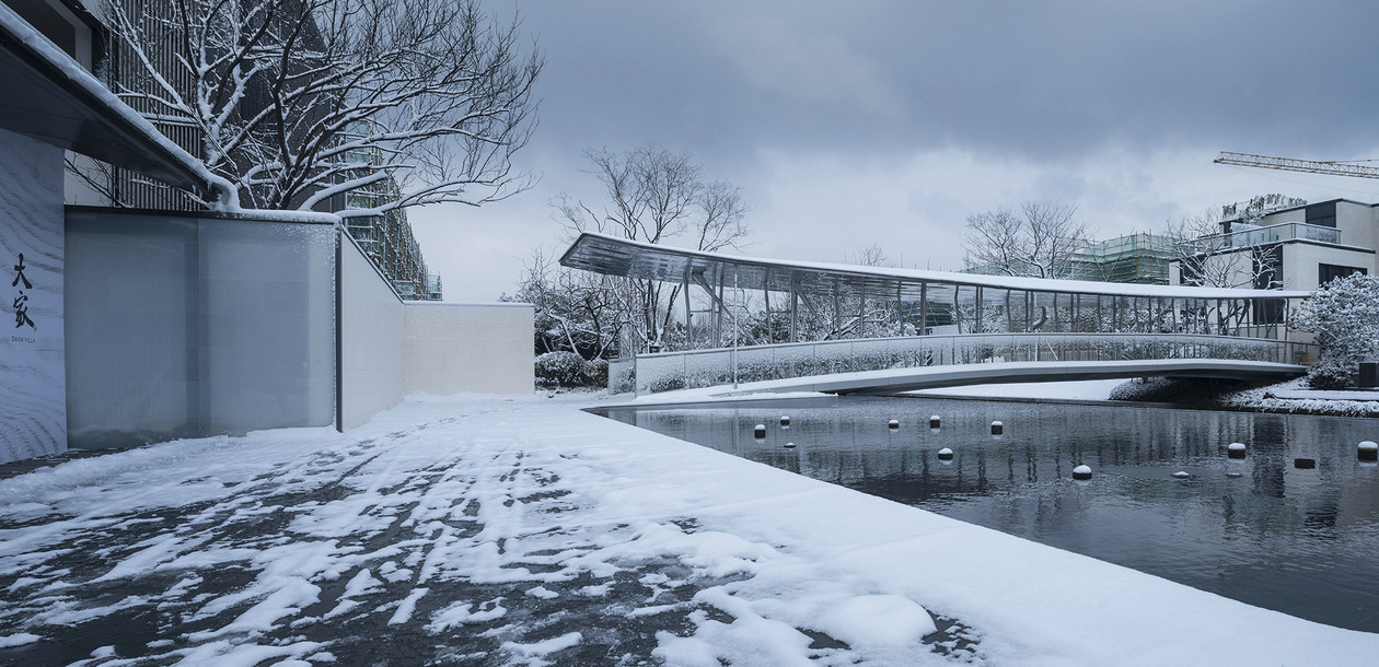 在景观上,万科大家有“逐影、雨镜、庭光、缦廊、归宇、听涛、抱水”七景,移步易景,幻若仙境,次第展开,大美不言。建筑设计中,百栋院墅、街道巷陌、穿宅而过的河流,空间彼此相融相合,一种广阔的空间感油然而生,人与天地仿佛无限亲近。