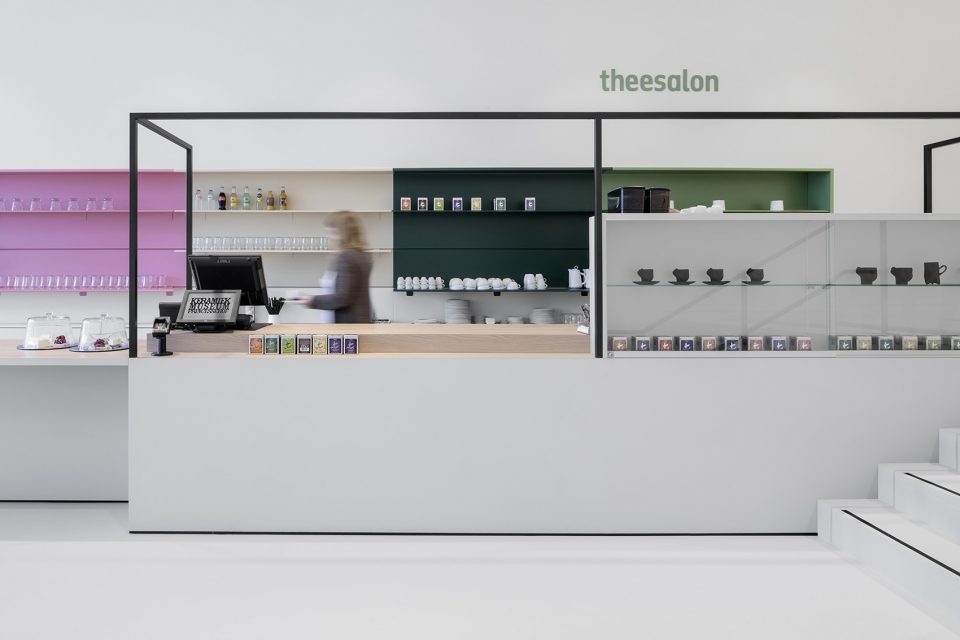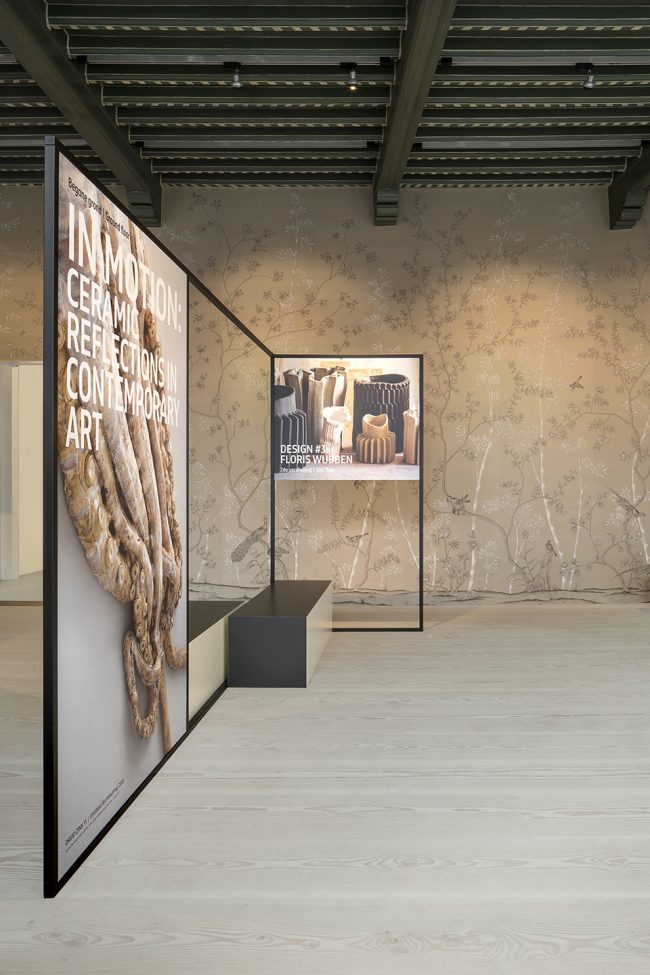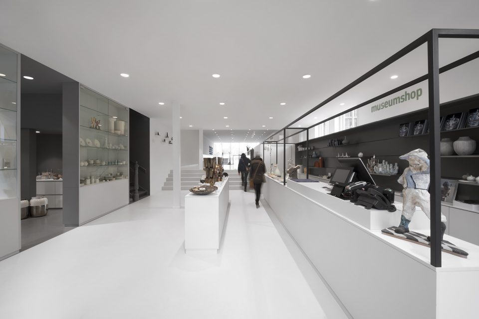 博物馆的入口区域被完全打开以吸引更多的游客,同时便于将观者引至茶室和博物馆商店。游客们可以从博物馆的前方和后方进入。宽阔的入口大厅使游客得以充分享受日光,同时使博物馆商店、收银台区域和茶室形成连接。空间中的平面形成微妙的高差,与土壤(陶瓷的源头)的分层形成呼应。柜台后方的坡道为残疾人士提供了进入博物馆的通道。与茶室相连的大型花园也同样向公众开放。