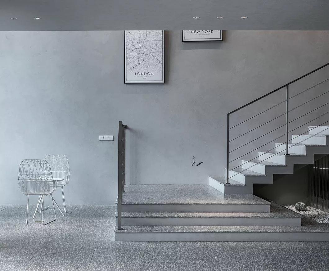“艺术馆”的主题使我们终于有机会尝试纯灰色空间,不同灰色系材料呈现出丰富的层次和质感。在材质组合搭配上,通过不同材质间的对比则形成一种有张力的戏剧化效果,使得空间的质感丰富且细腻。毛毡、水磨石、花纹铝板、波纹铝板、清水混凝土、艺术涂料、木材和大理石等材料,在空间里交错组合,共同营造了一个微妙的“灰”空间。