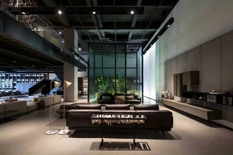 DIA以“内建筑”的理念搭建出一道空中廊桥,创造出双挑空的格局,丰富了空间构成的层次,更为家具场景的引入打造多元的体验可能。